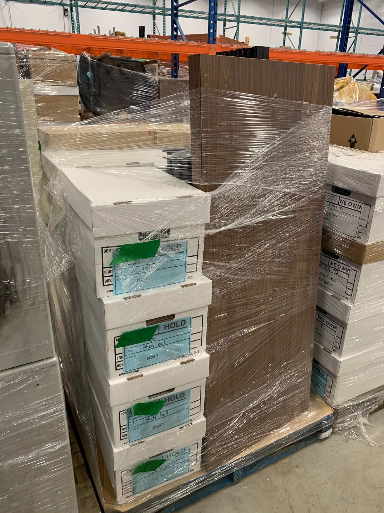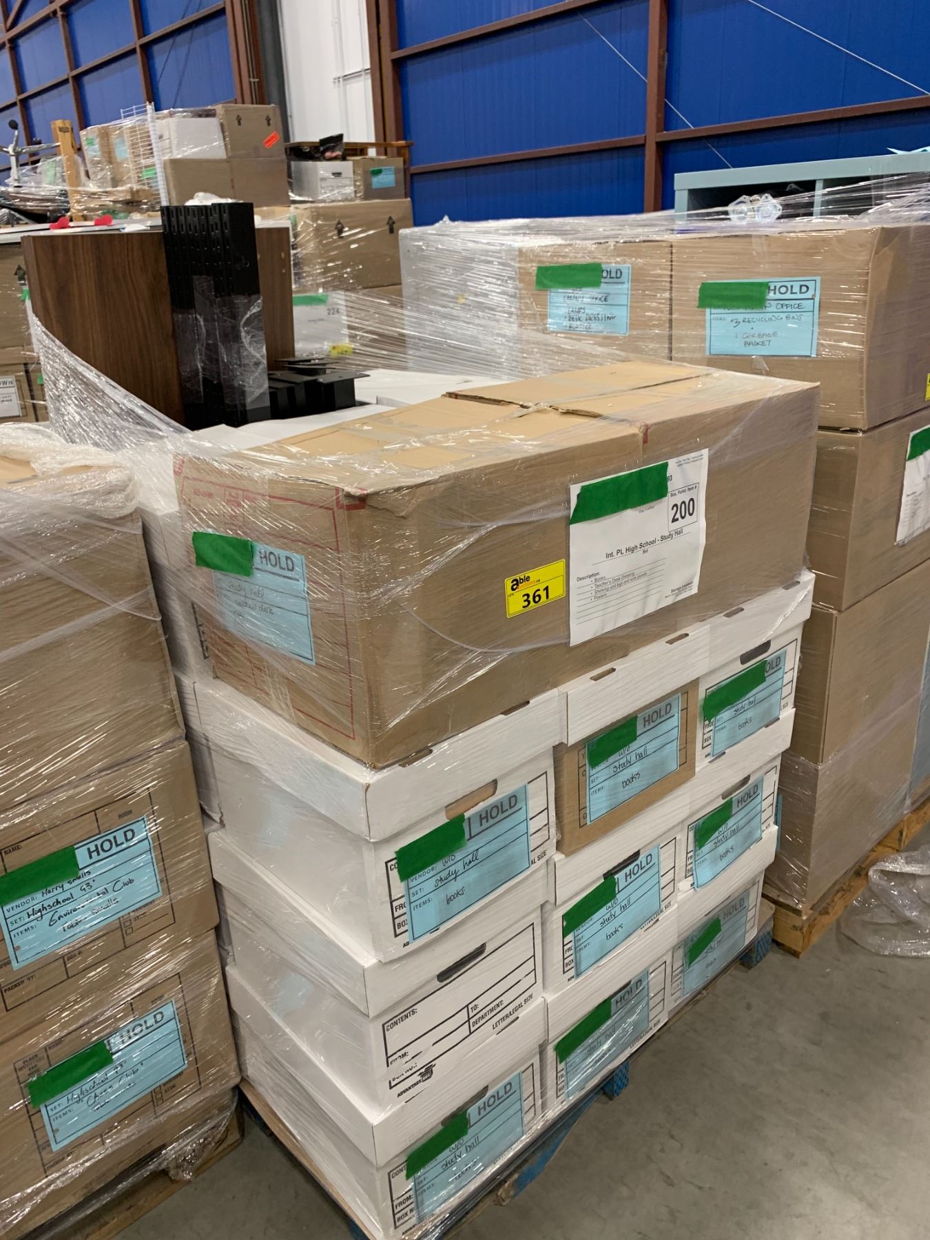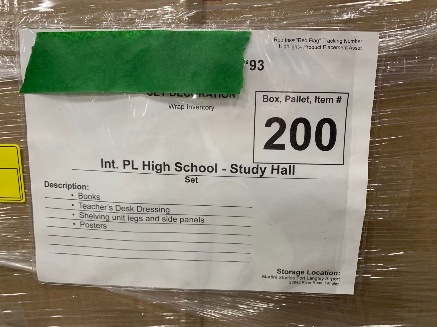 PALLET OF SET DEC ITEMS INCLUDING; SHELVING UNIT, BOOKS, POSTERS AND MORE