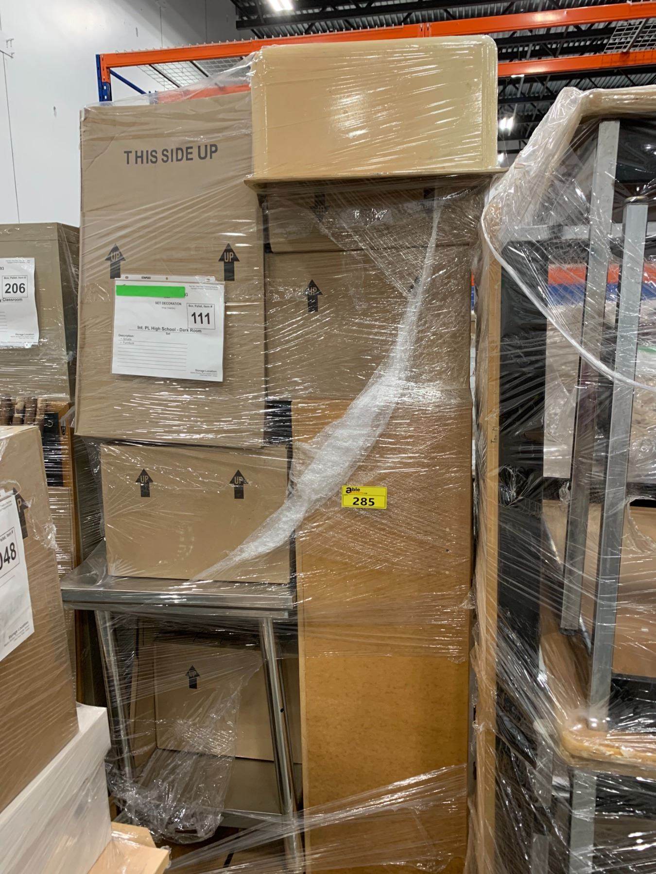 PALLET OF SET DEC ITEMS INCLUDING; SMALLS AND FURNITURE