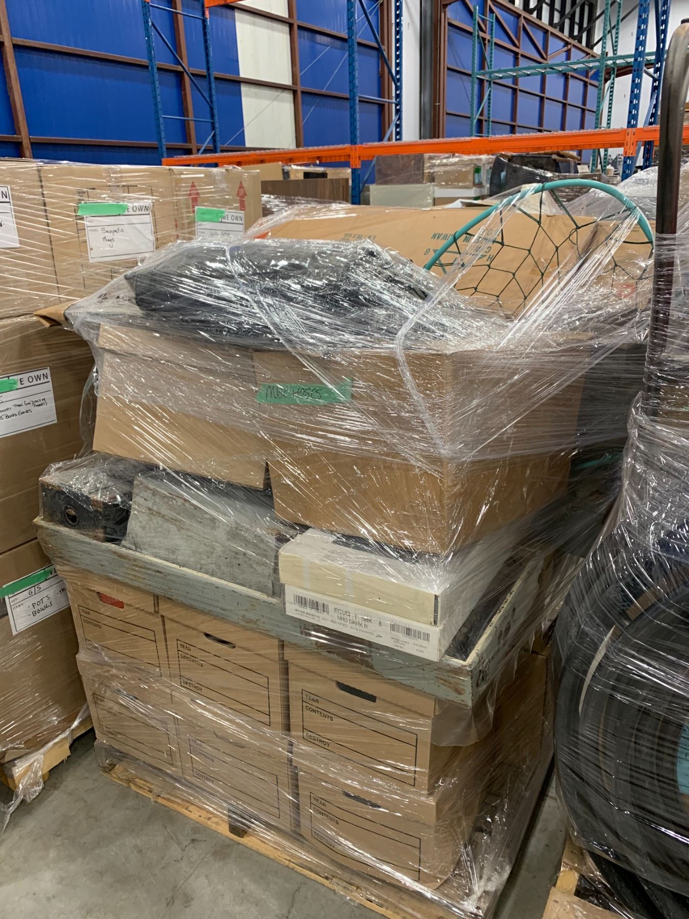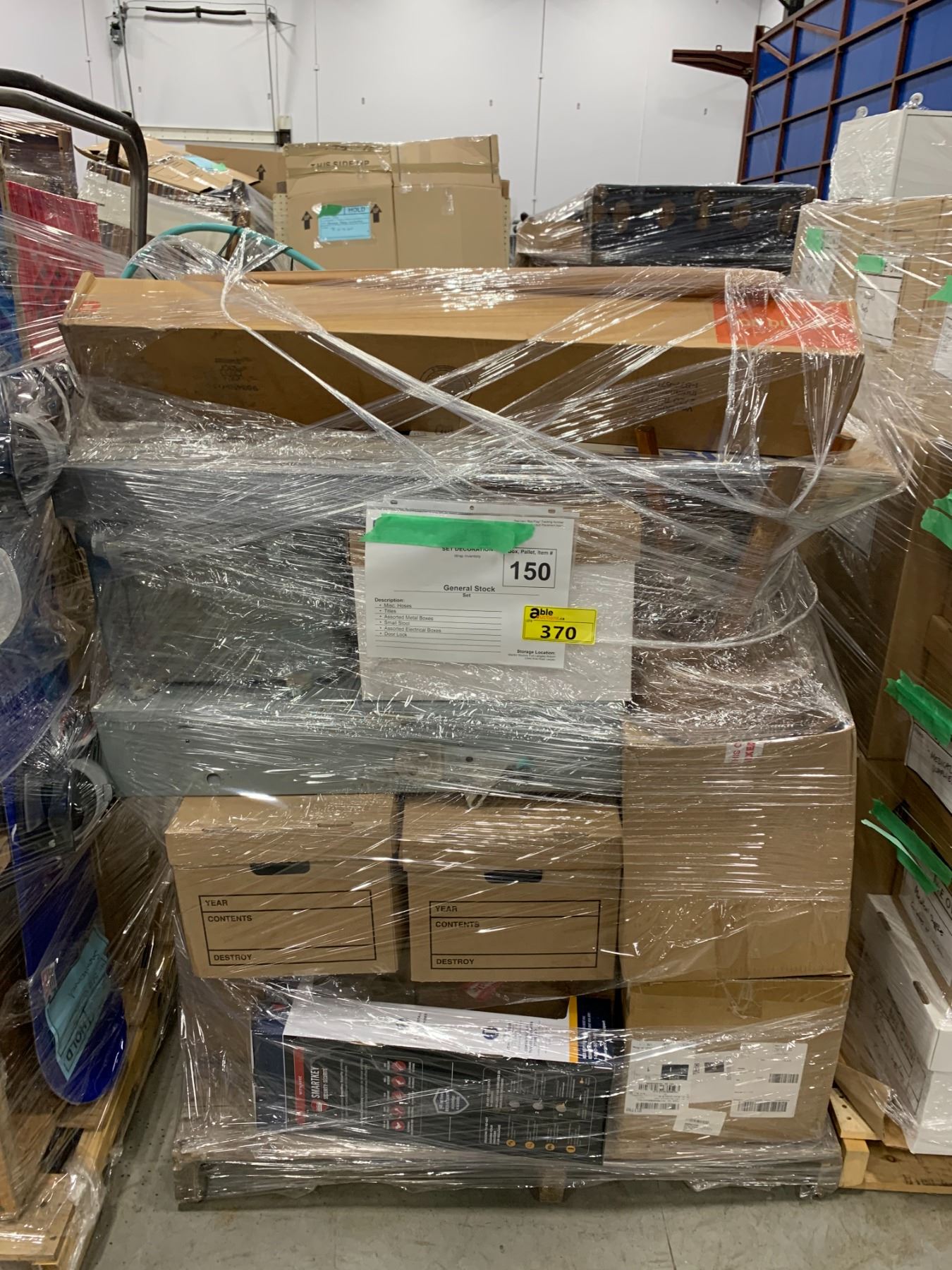 PALLET OF SET DEC ITEMS INCLUDING; TILES, ASSORTED ELECTRICAL BOXES, DOOR LOCK AND MORE