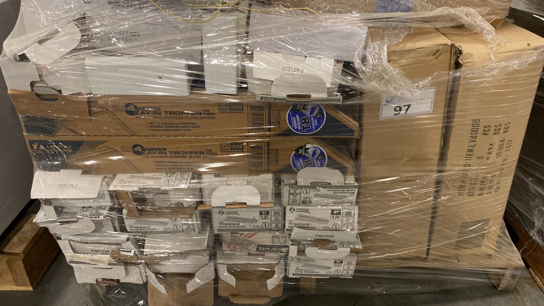 PALLET OF SET DEC PROPS/DECORATIONS - ASSORTED LIGHTING, ELECTRICAL BOX, EXIT SIGNS & MORE *MUST