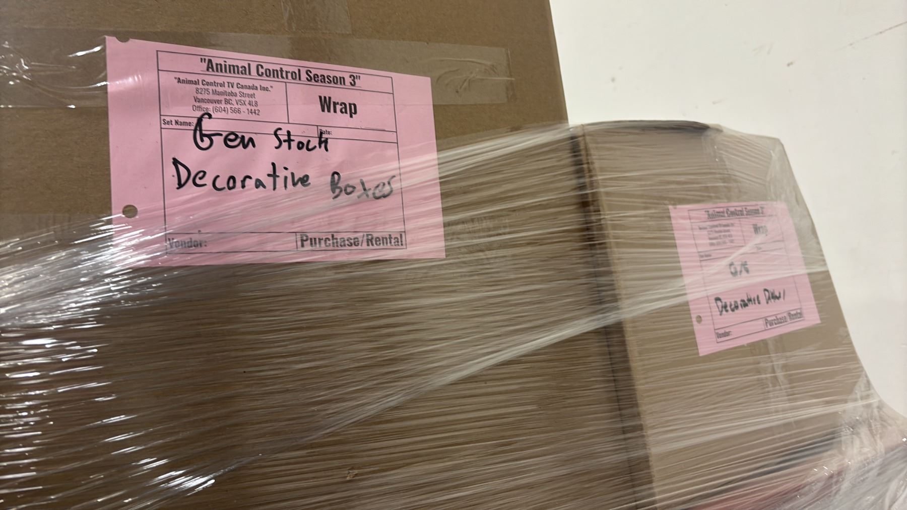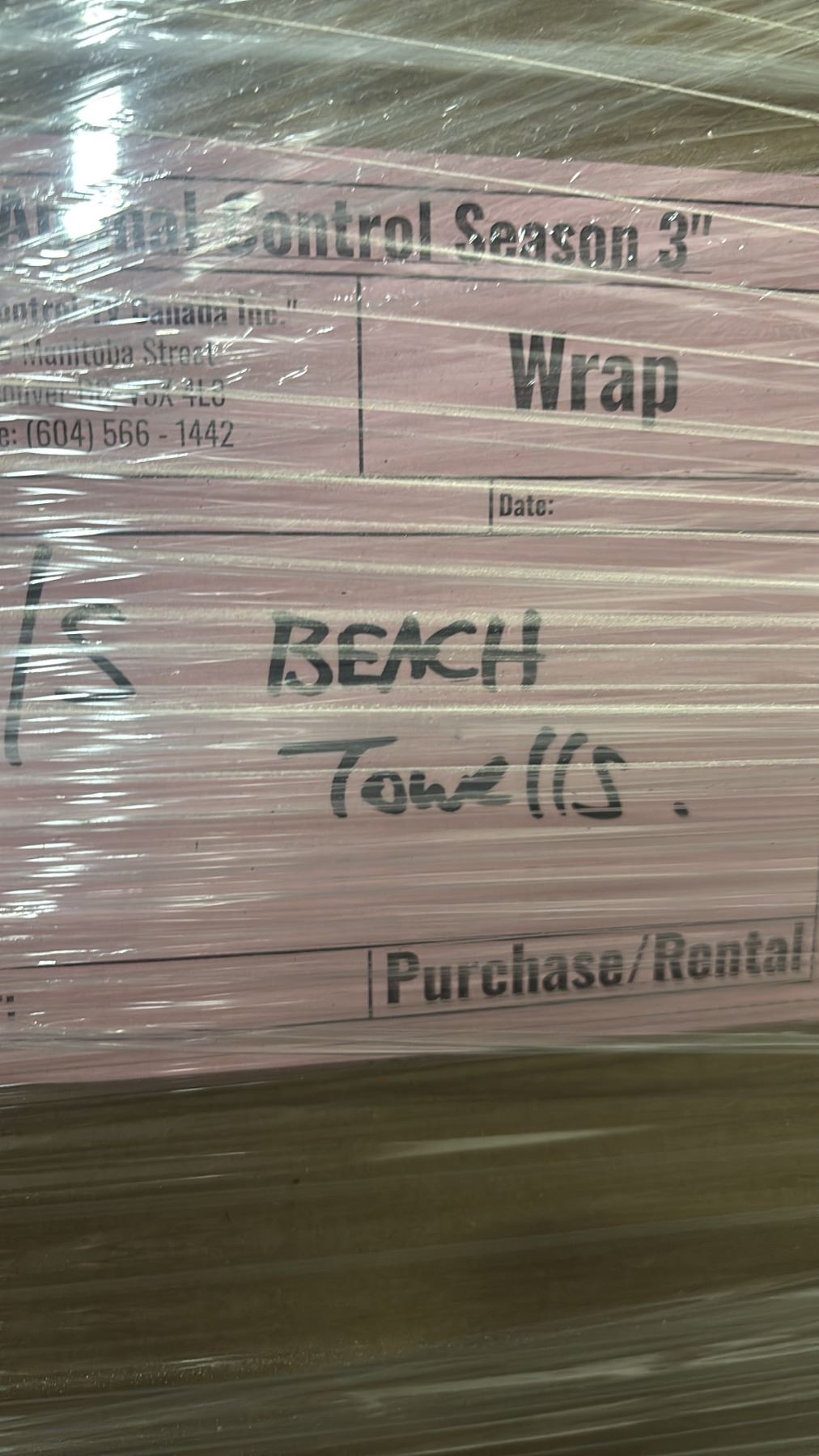 PALLET OF SET DEC PROPS/DECORATIONS - DECORATIVE BOXES, BEACH TOWELS, DECORATIVE DISHES PILLOWS, CLOTHES & MORE *MUST TAKE ALL*