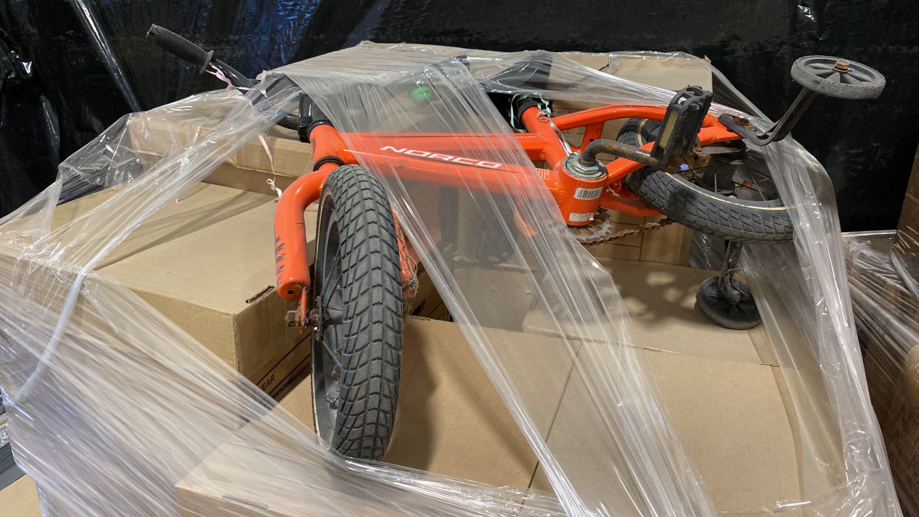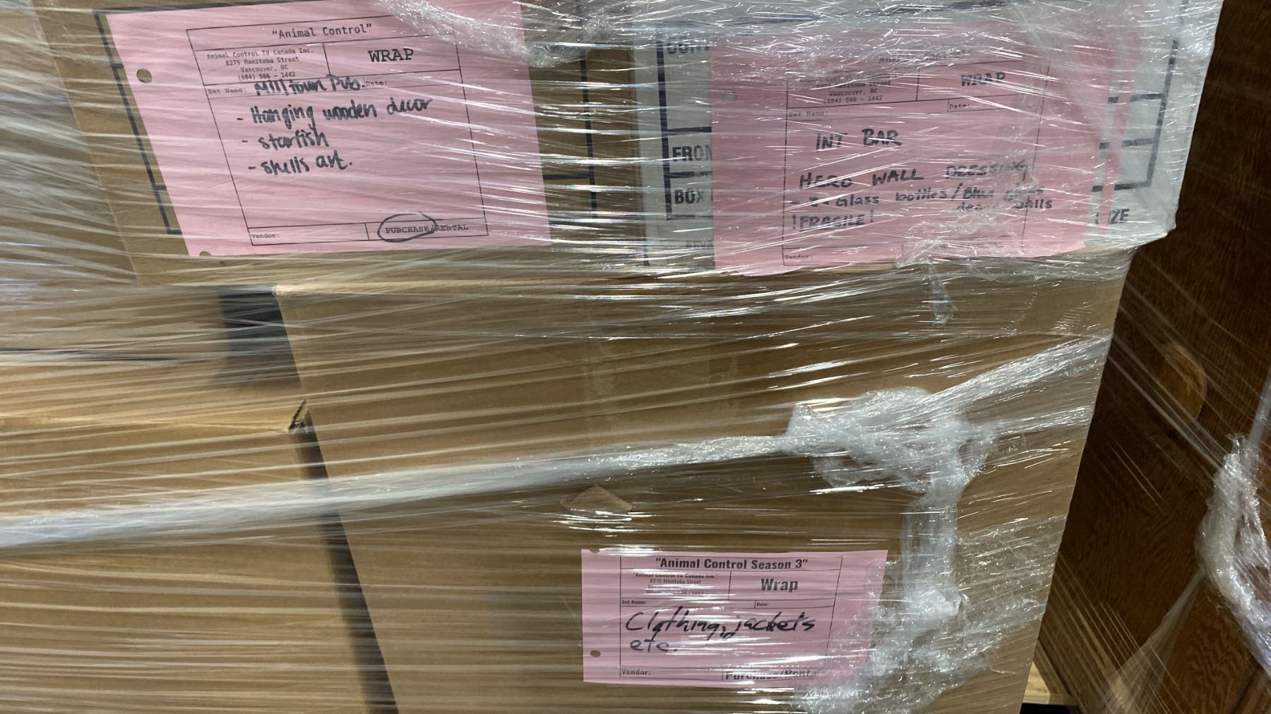 PALLET OF SET DEC PROPS/DECORATIONS - HANGING WOODEN DECOR, STARFISH, SHELL ART, CHILDRENS BIKE & MORE *MUST TAKE ALL*