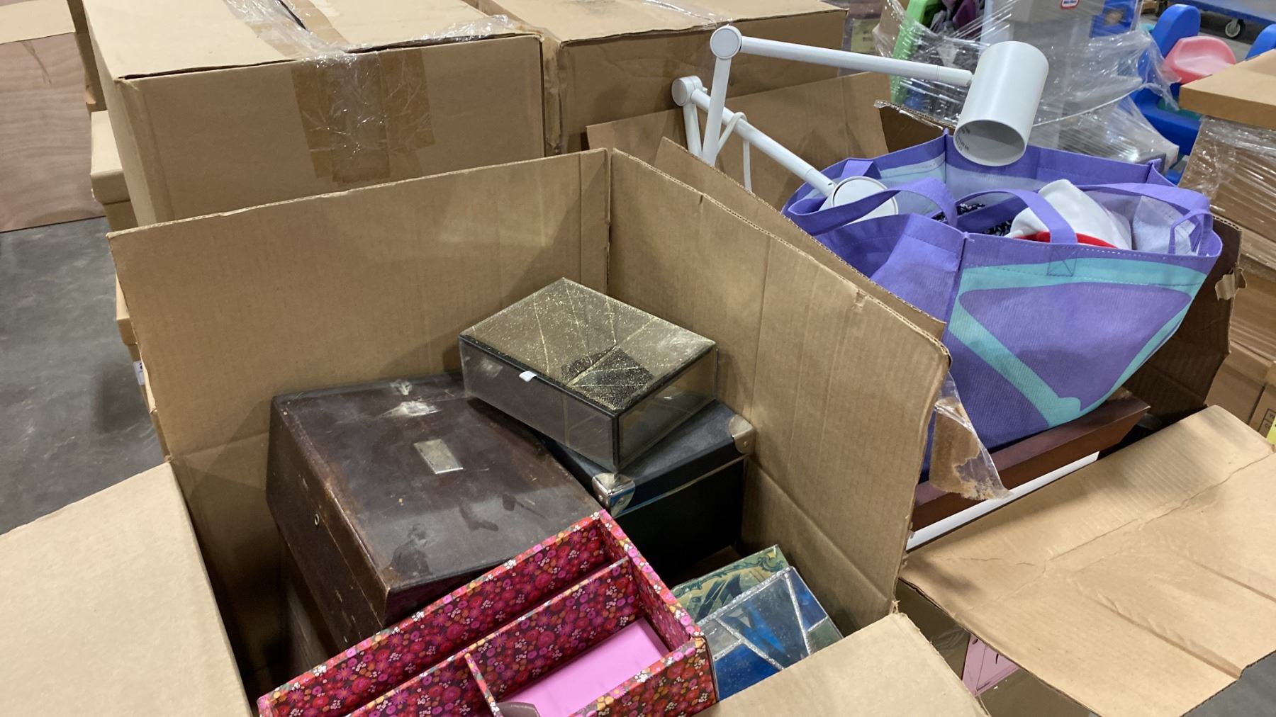 PALLET OF SET DEC PROPS/DECORATIONS - JEWELLERY BOXES, VAES, LARGE GLASS JARS, CAT SCRATCHING POSTS & MORE *MUST TAKE ALL*