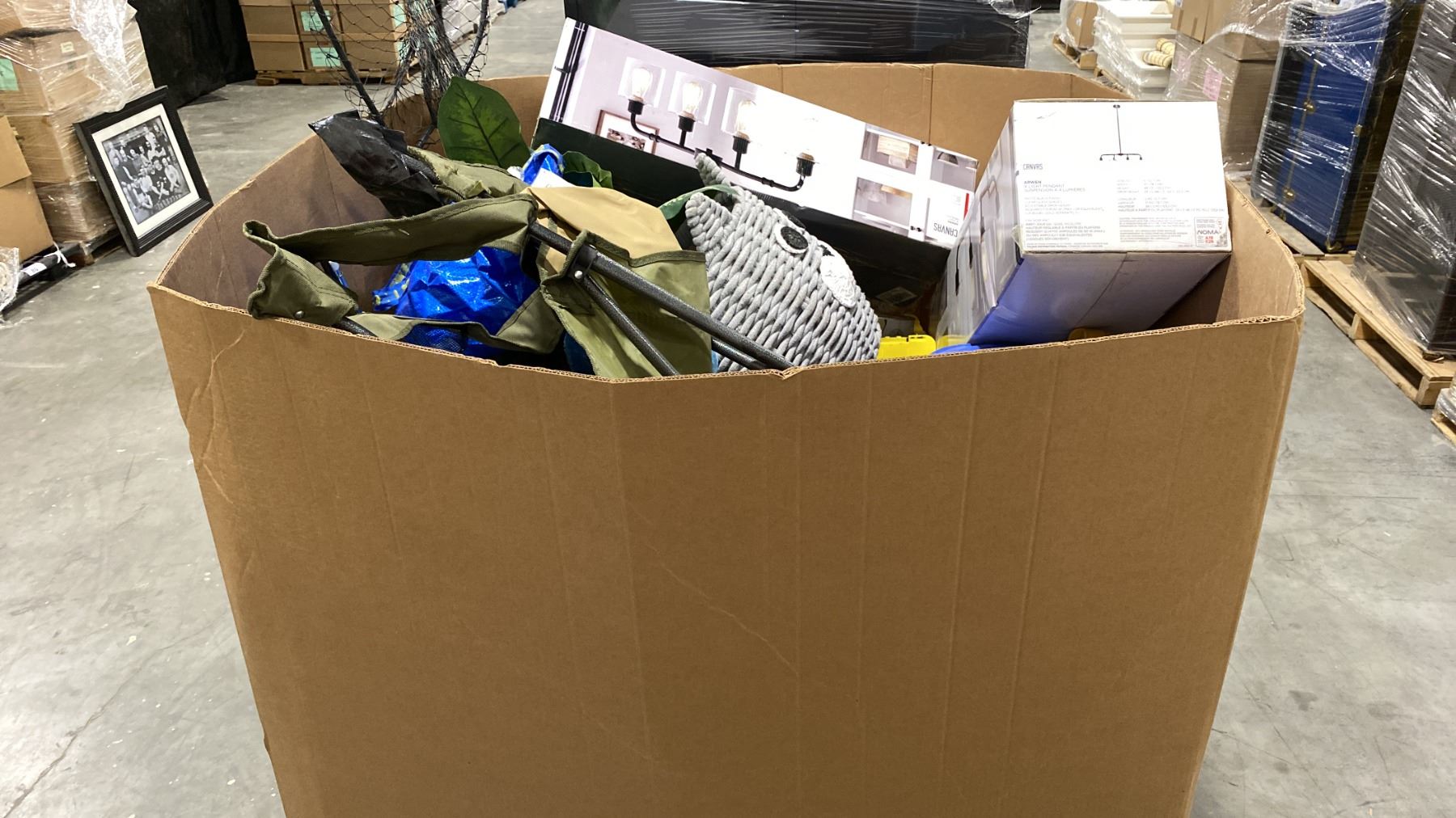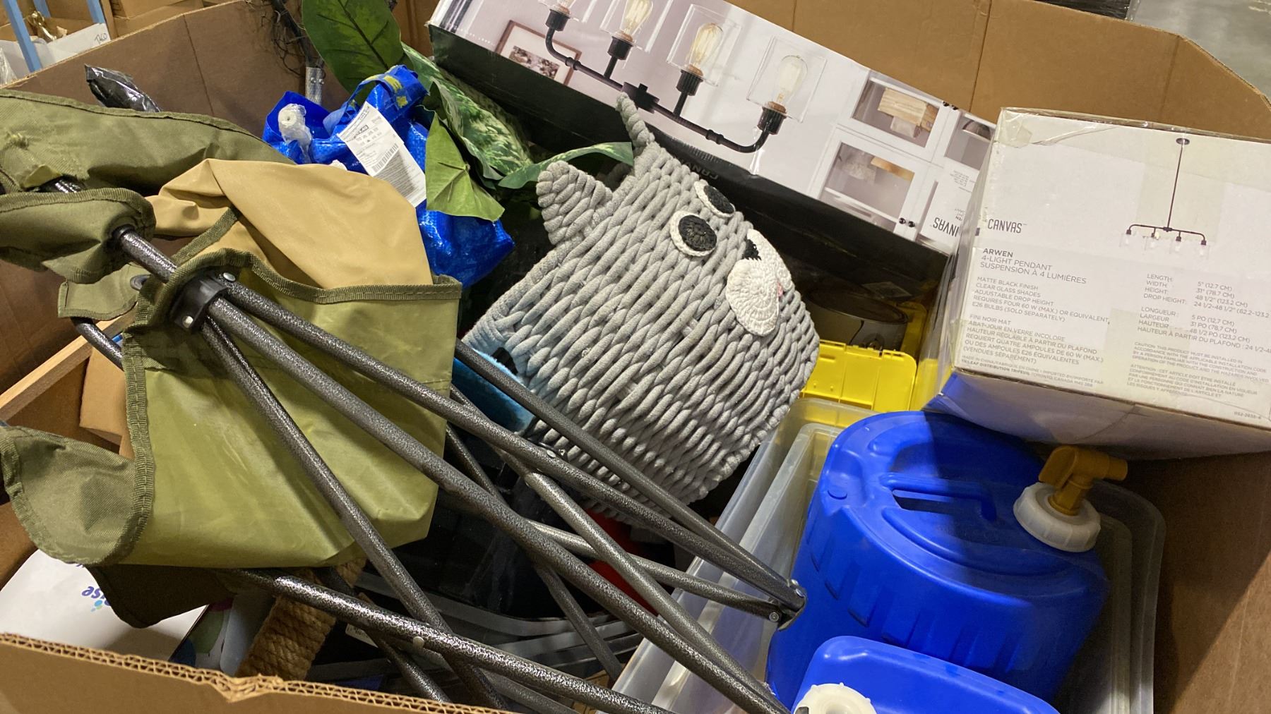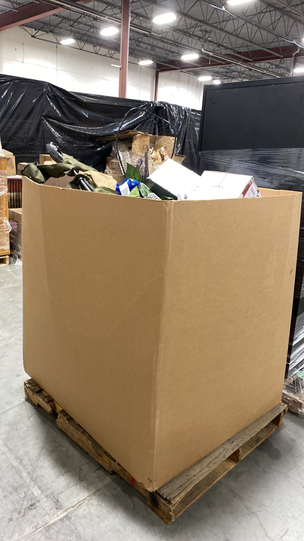 PALLET OF SET DEC PROPS/DECORATIONS - LIGHTS, LAUNDRY BASKET, HELIUM TANK, TOTES & MORE *MUST TAKE ALL*