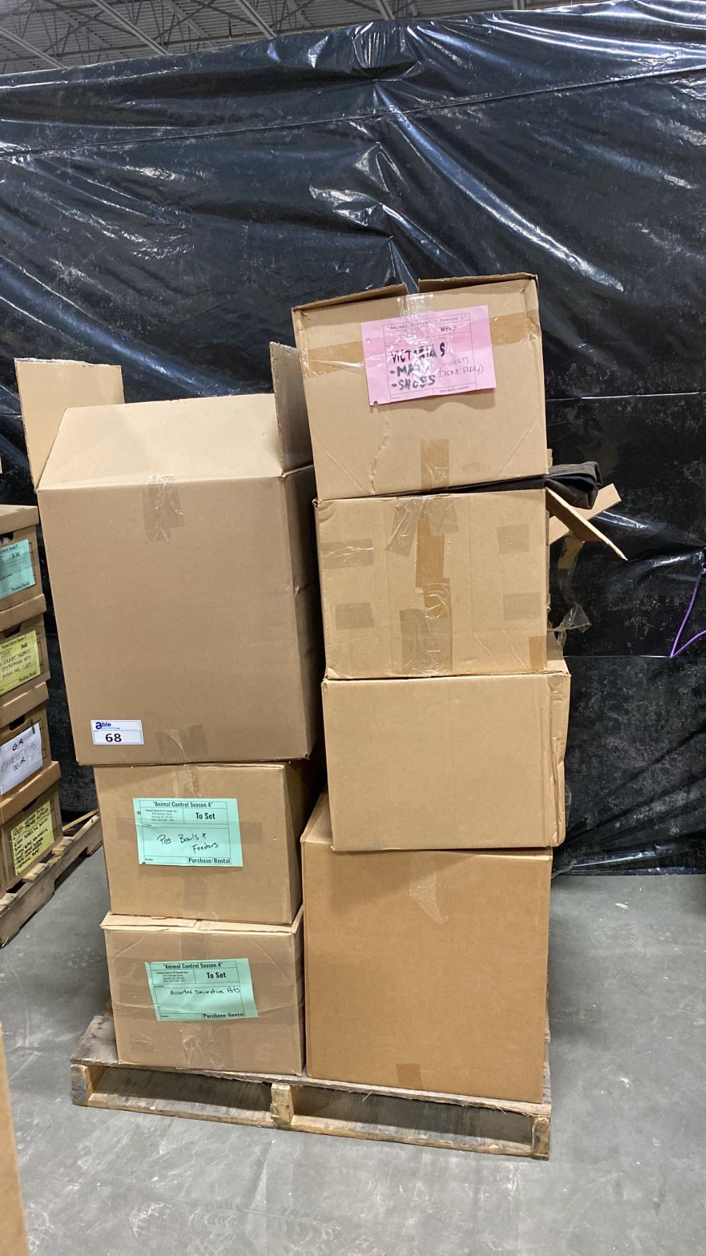 PALLET OF SET DEC PROPS/DECORATIONS - PET BOWLS, FEEDERS, DECORATIVE POTS, LAMPS, CURTAINS & MORE *MUST TAKE ALL*