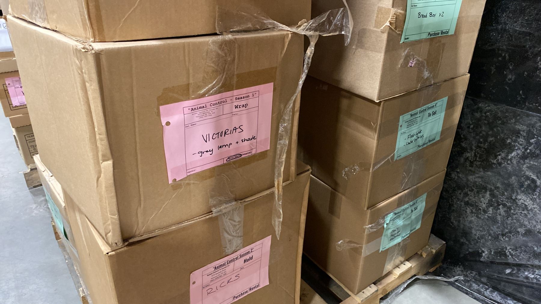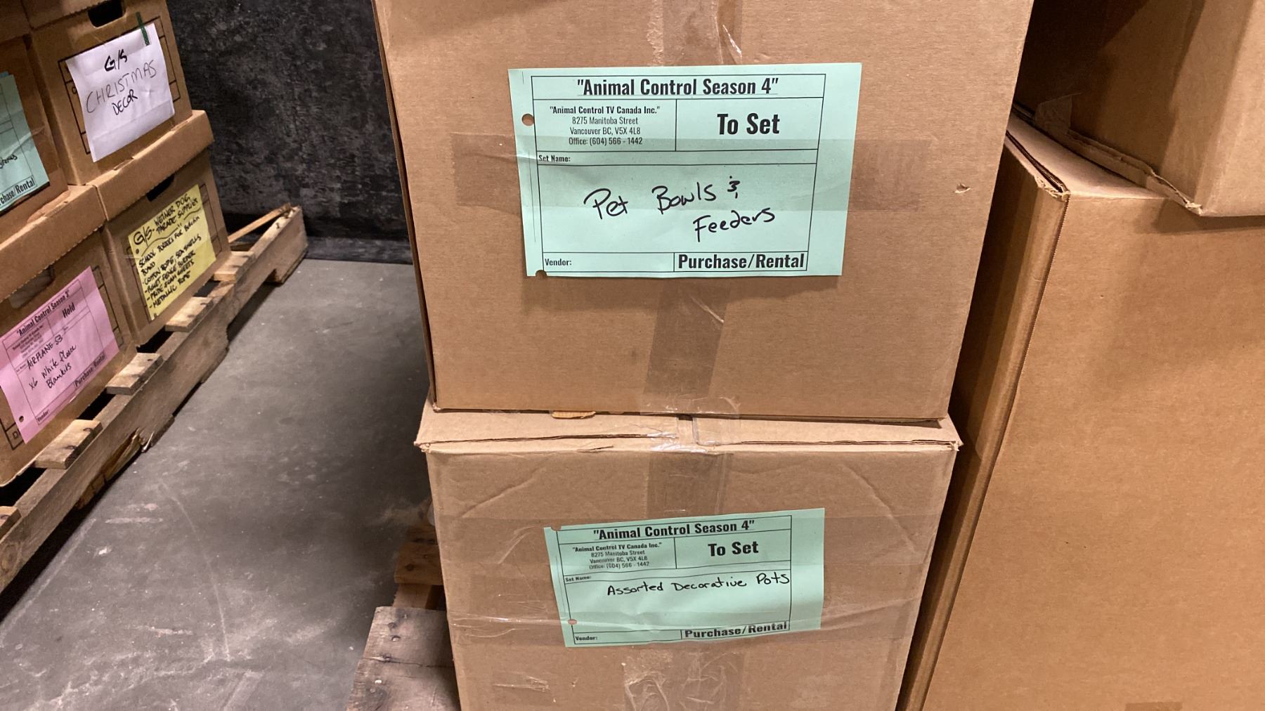 PALLET OF SET DEC PROPS/DECORATIONS - PET BOWLS, FEEDERS, DECORATIVE POTS, LAMPS, CURTAINS & MORE