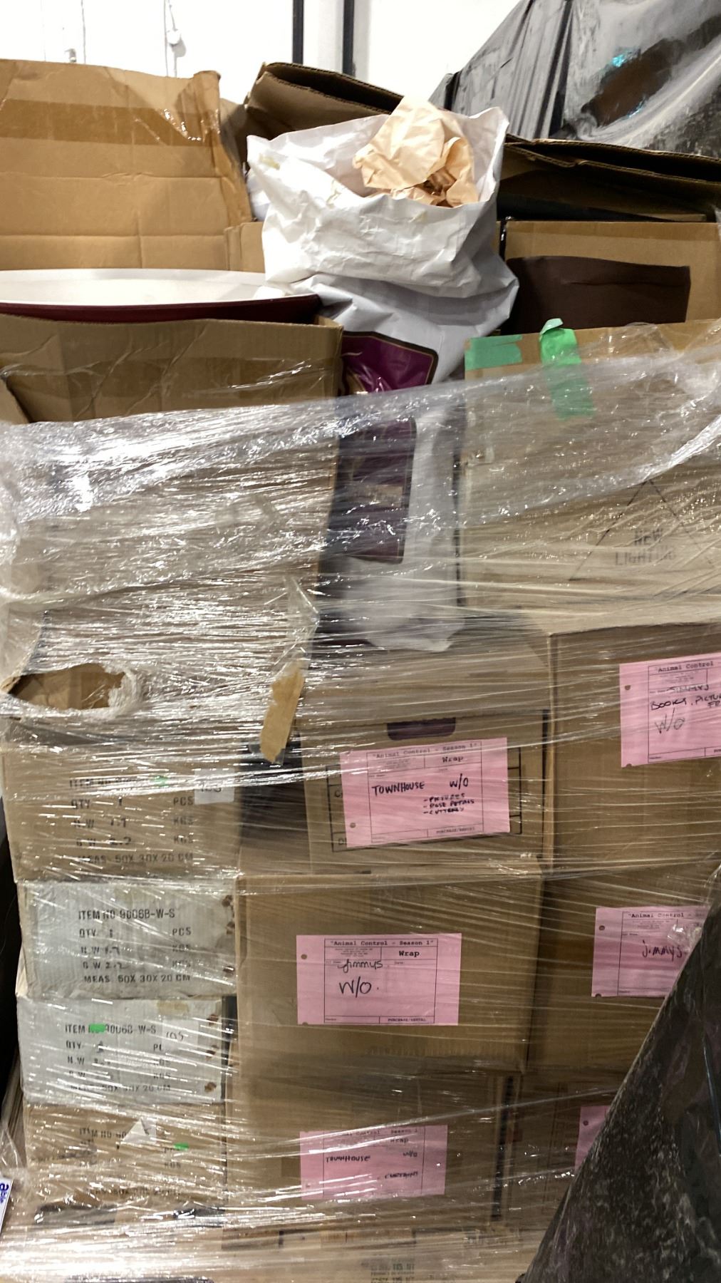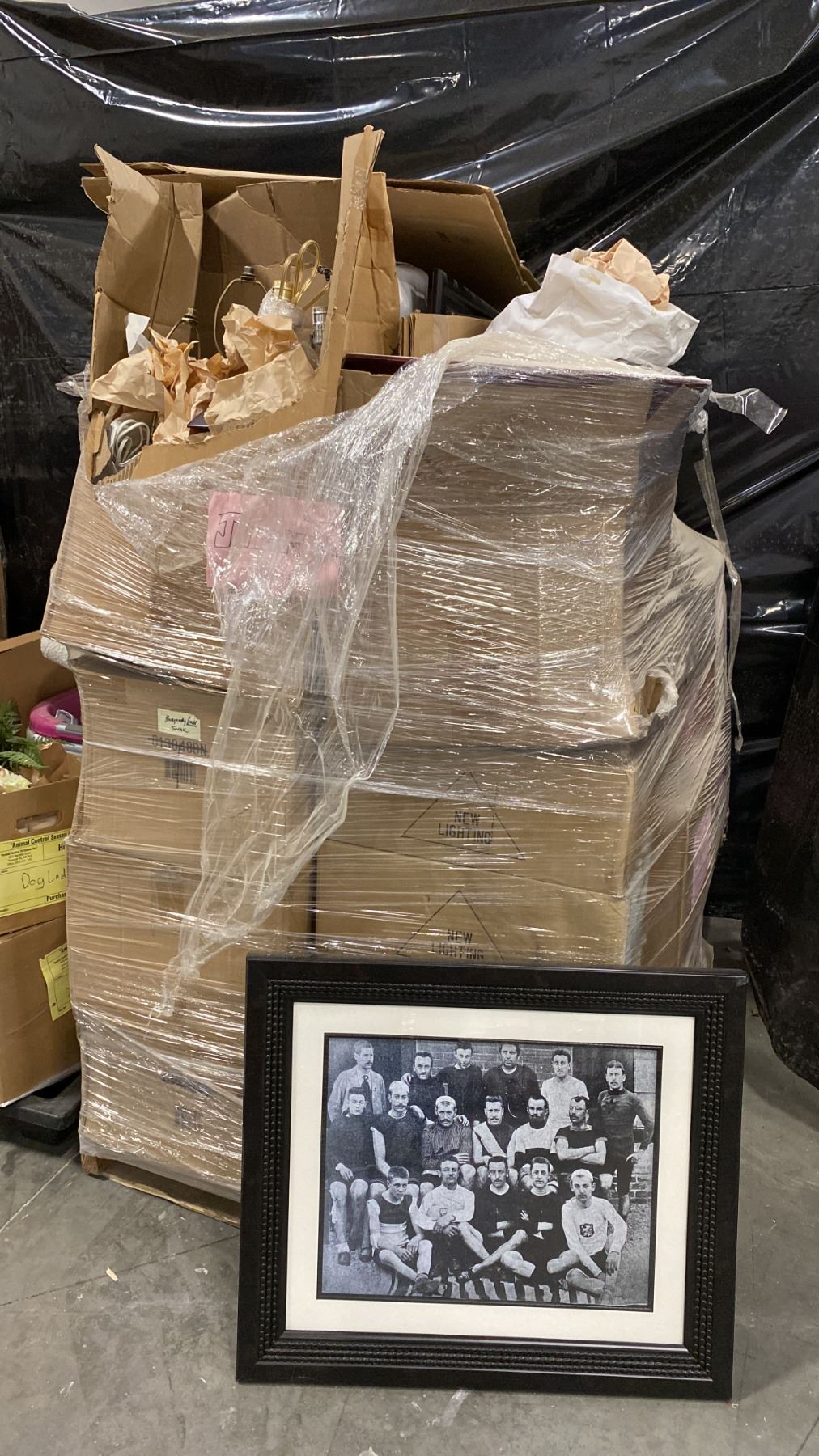PALLET OF SET DEC PROPS/DECORATIONS - PICTURE FRAMES, CURTAINS. BOOKS, PLACEMATS, CUTLERY & MORE *MUST TAKE ALL*