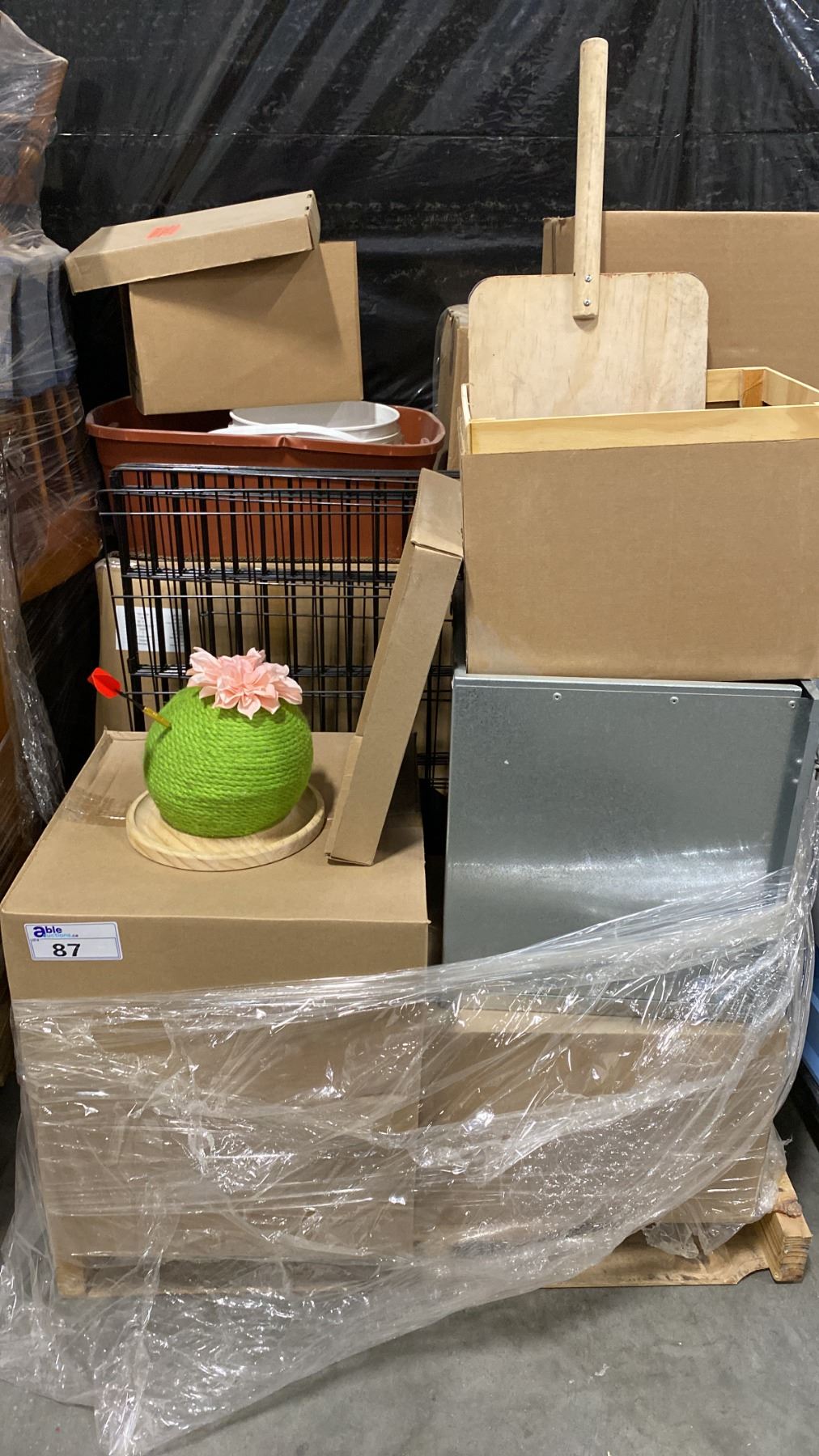 PALLET OF SET DEC PROPS/DECORATIONS - STEREO, CUSHIONS, PRINTER, CAT SCRATCHING POST & MORE *MUST