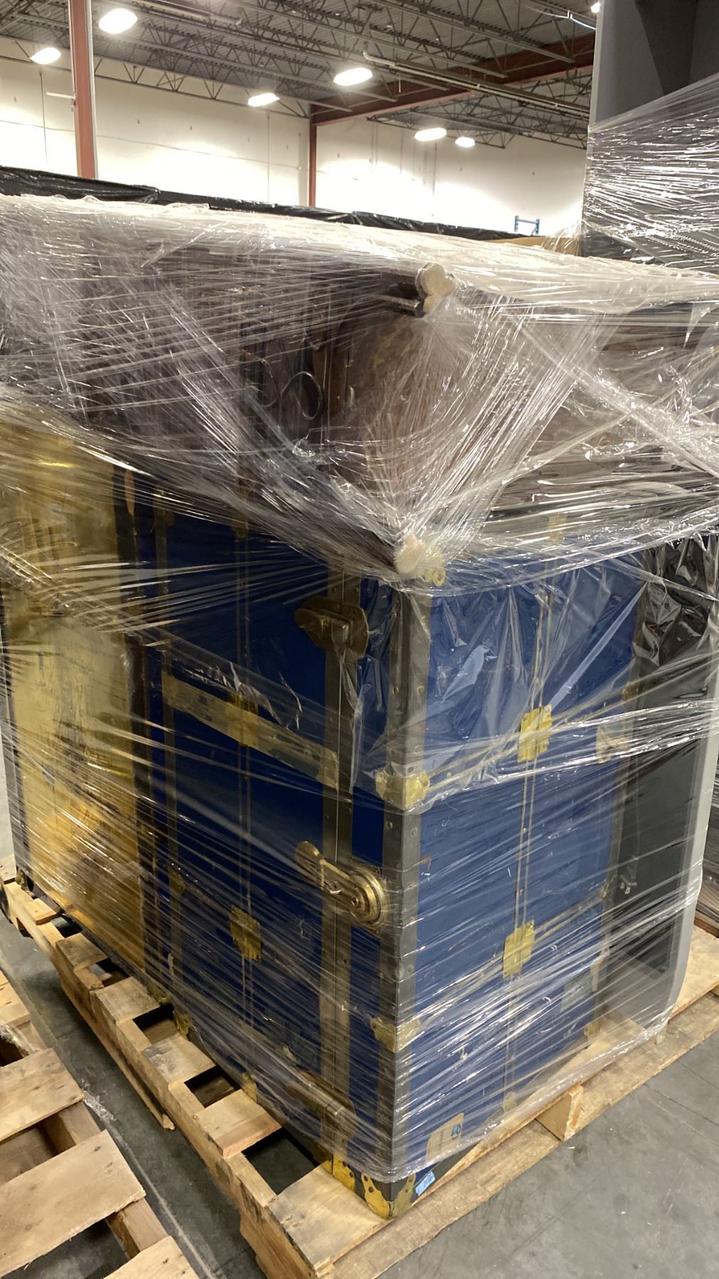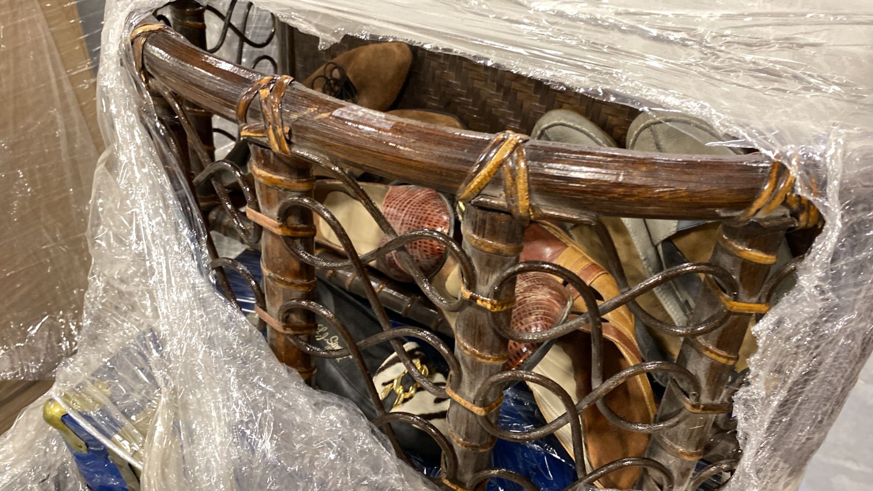PALLET OF SET DEC PROPS/DECORATIONS - VINTAGE CHESTS, JVC HD-52Z575 TELEVISION, SHELF, SHOES & MORE *MUST TAKE ALL*