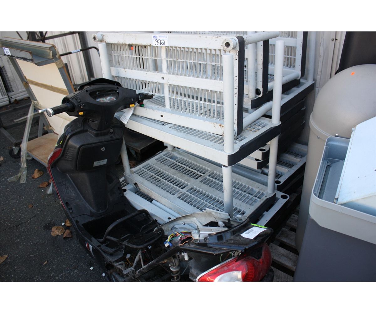 PALLET OF SHELVING AND SCOOTER
