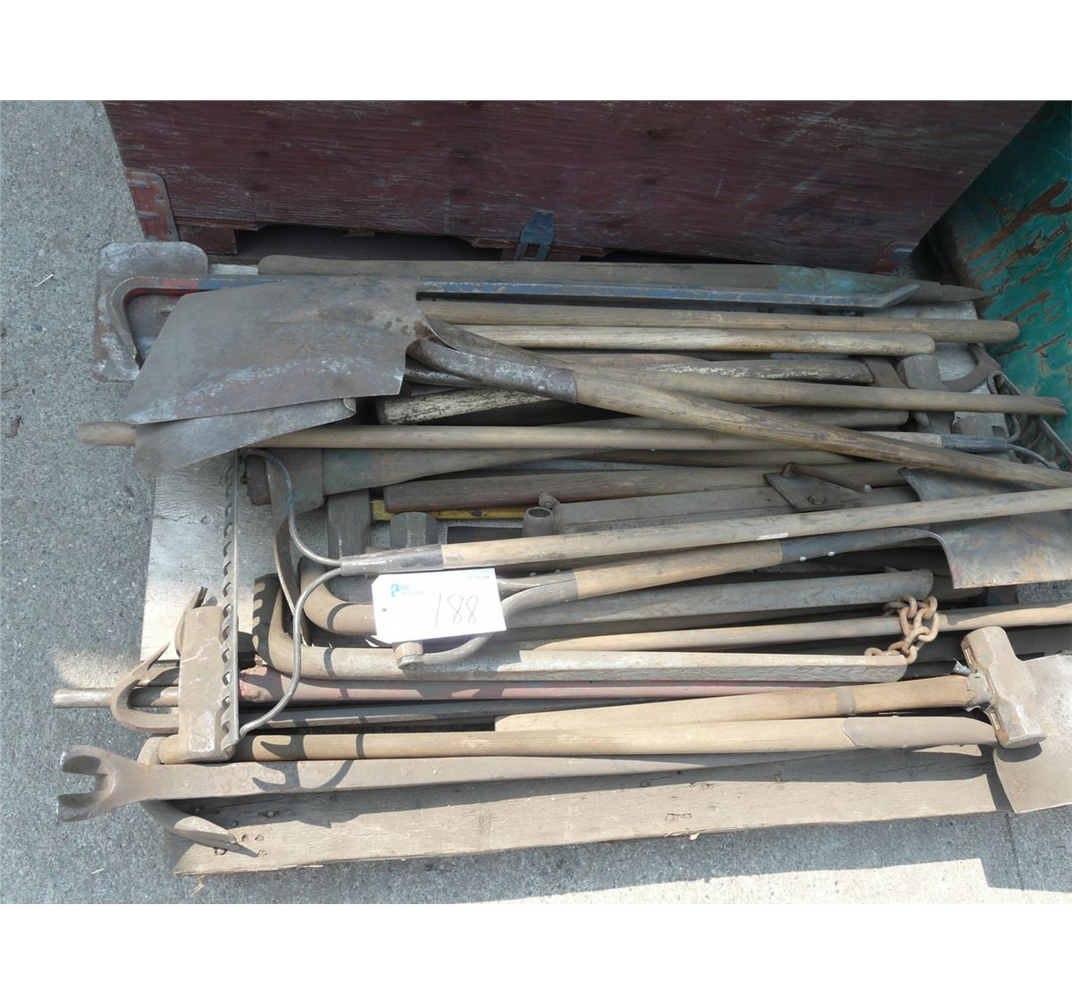 PALLET OF SHOVELS, HAMMER & MISC TOOLS