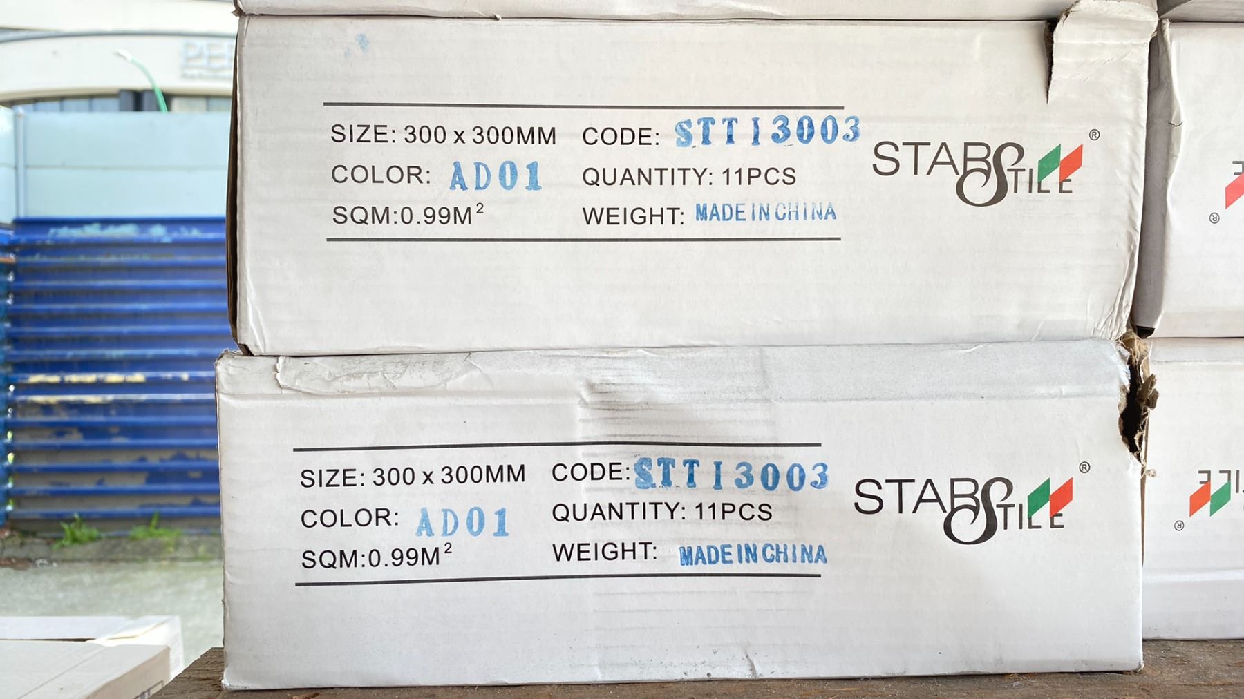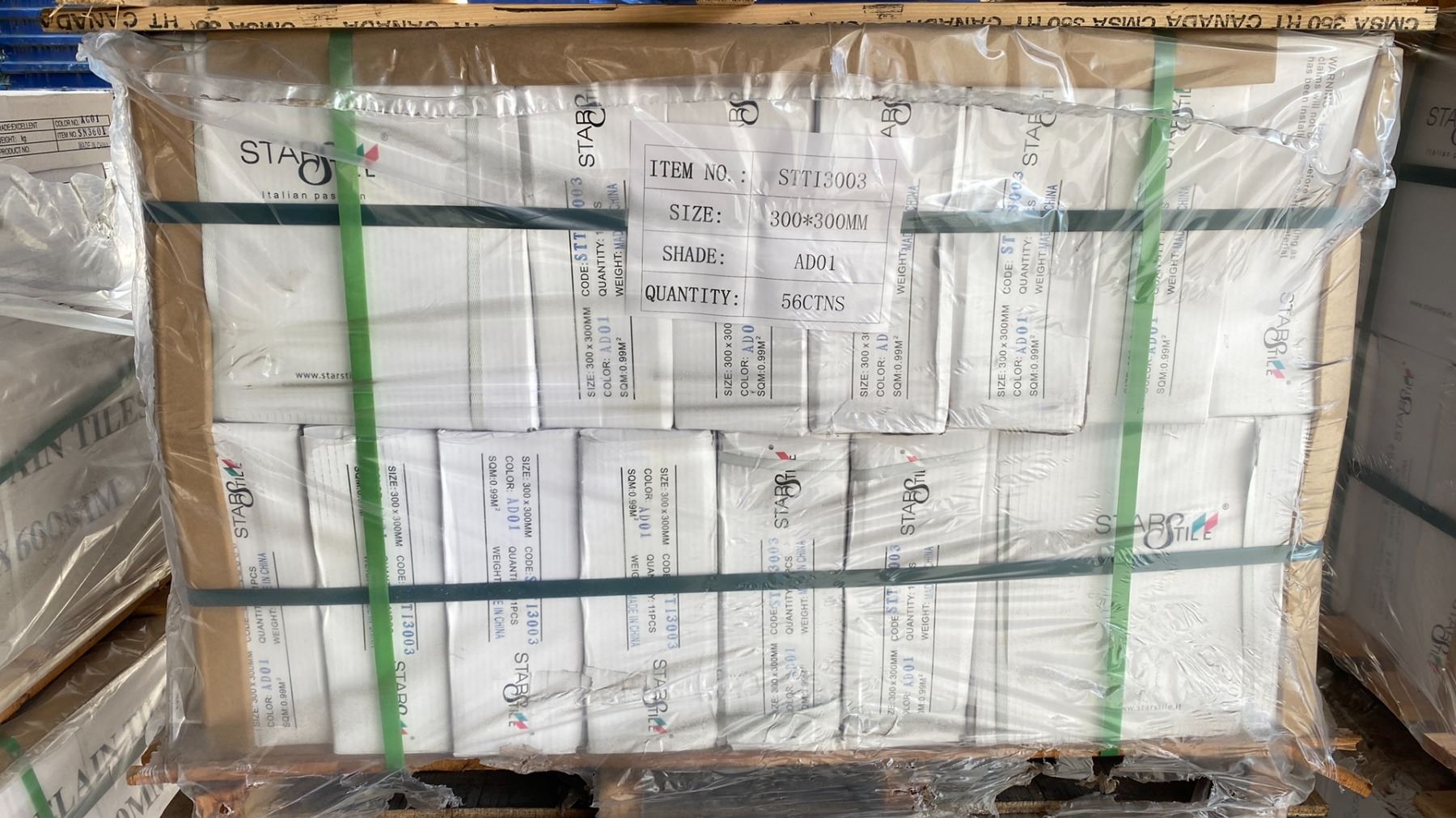 PALLET OF STARSTILE 300 X 300MM TILES, COLOUR AD01, 11 PIECES PER BOX, APPROX 56 BOXES