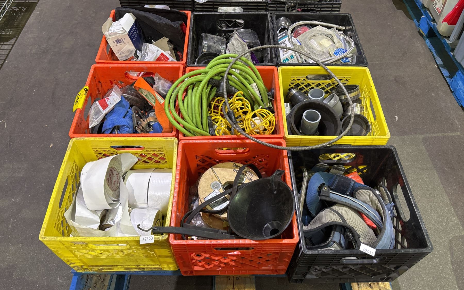 PALLET OF STRING WORK LIGHTS, ASSORTED HARDWARE, STRING WORK LIGHTS, FITTINGS & MORE *MUST TAKE ALL ON PALLET*