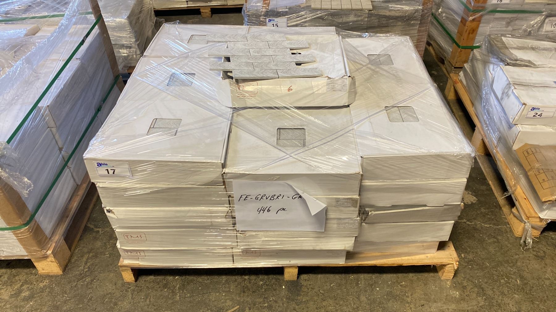 PALLET OF TMS MOSAIC TILES FE-GRVBRI-GR 11 PCS / 1 SQ.M PER BOX ( APPROX. 446 PCS )