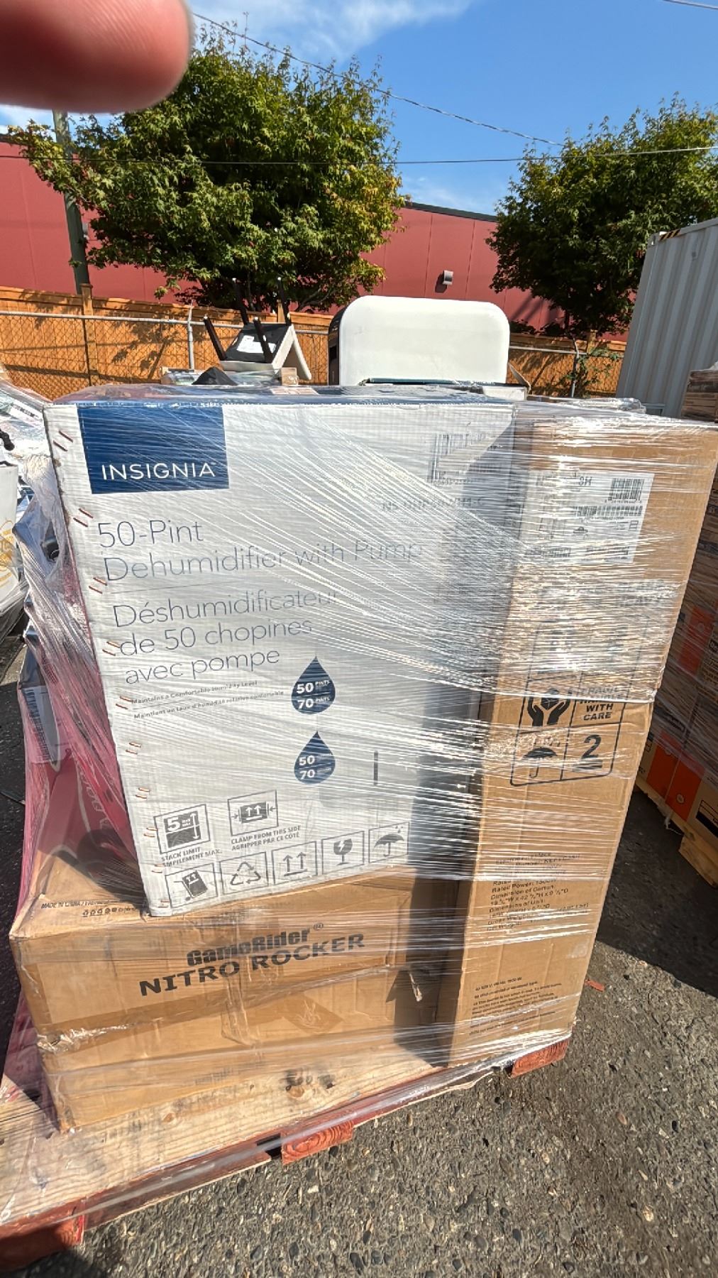PALLET OF TOASTER OVENS, DEHUMIDIFIER, GAME RIDER NITRO ROCKER & MORE *MUST TAKE ALL ON PALLET*