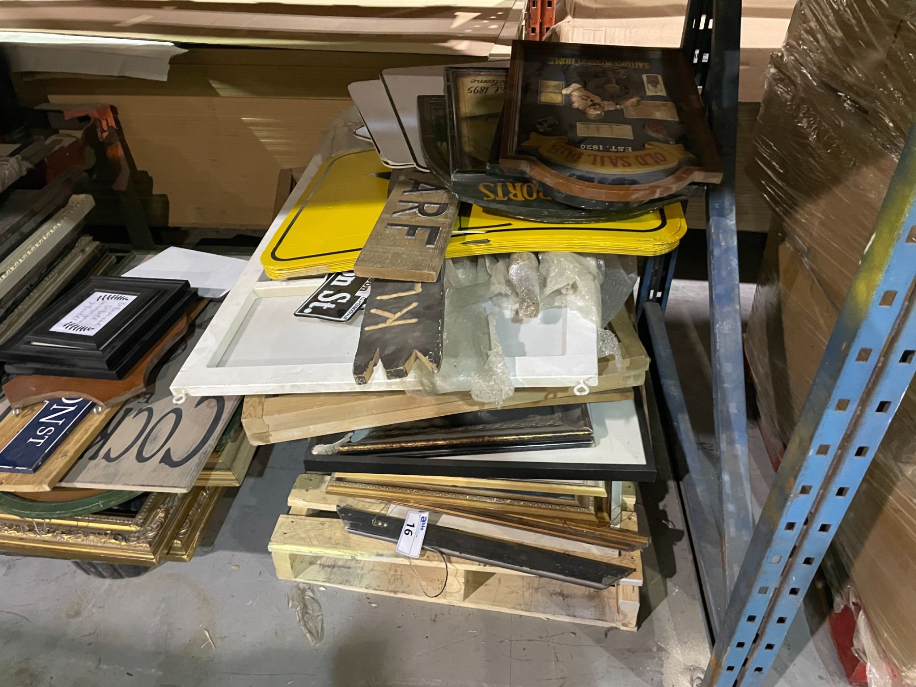 PALLET OF VARIOUS FRAMED ARTWORK, SIGNS, & MIRRORS