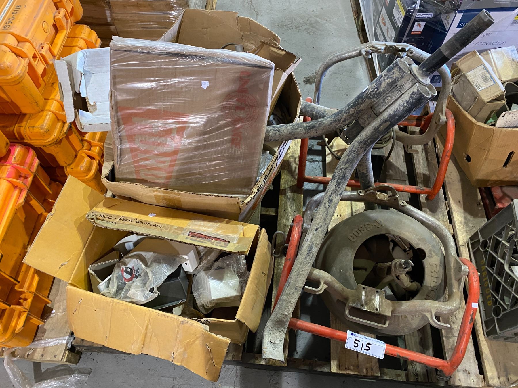 PALLET OF VARIOUS INDUSTRIAL PLUMING PARTS, K-3800 DRUM MACHINE