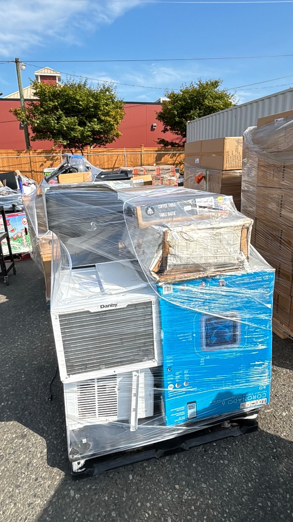 PALLET OF WATER COOLERS, SALUSPA INFLATIBLE SPA, AIR CONDITIONERS & MORE *MUST TAKE ALL ON PALLET/ WORKING CONDITION UNKNOWN MAY BE MISSING PARTS & OR PIECES*