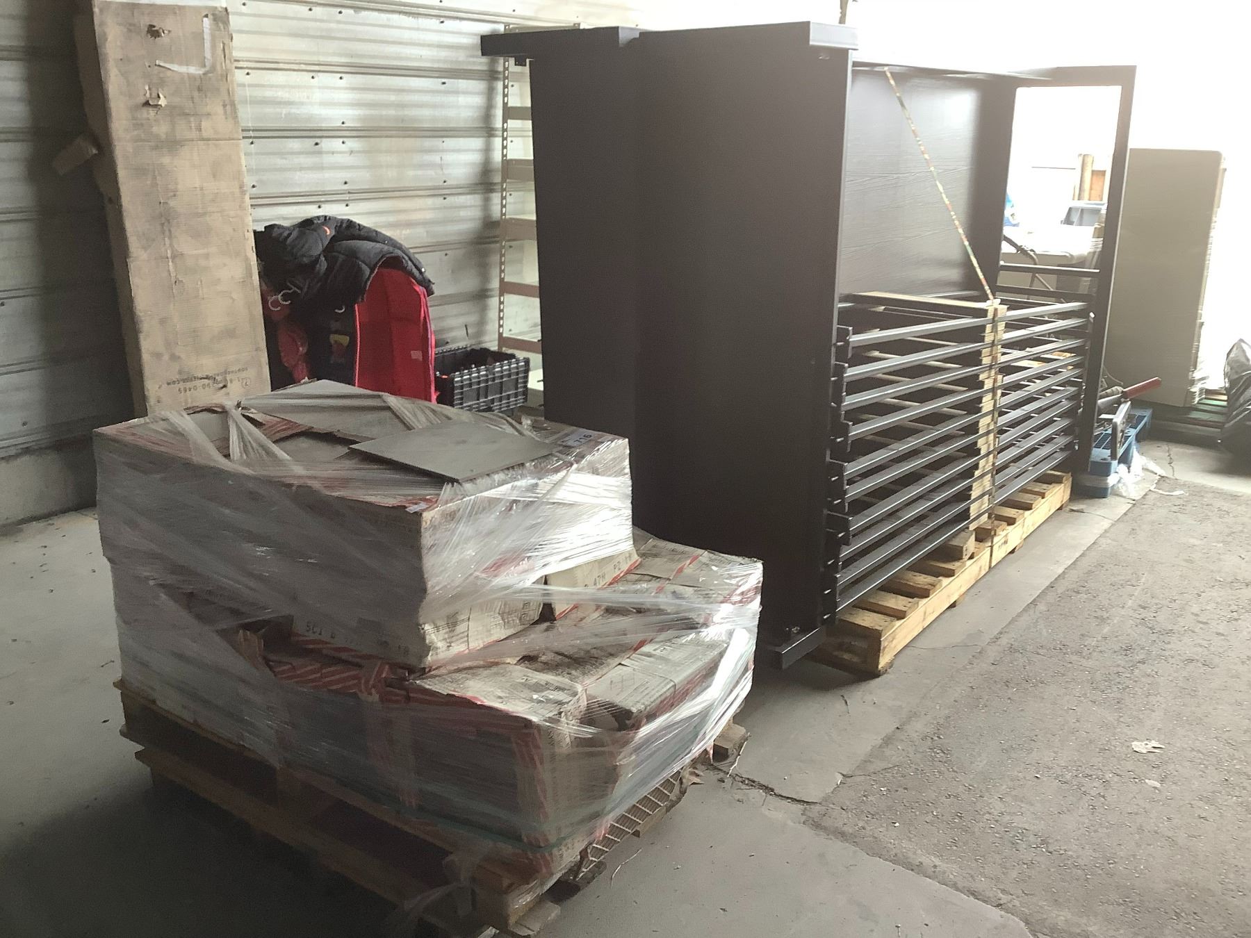 PALLET OF WINSTON TILE DISPLAY RACKS AND ITALIAN 12X12 TILE