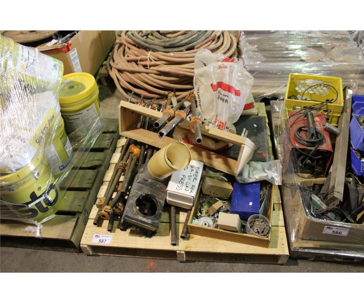 PALLET OF WOODWORKING TOOLS AND PIPE CLAMPS