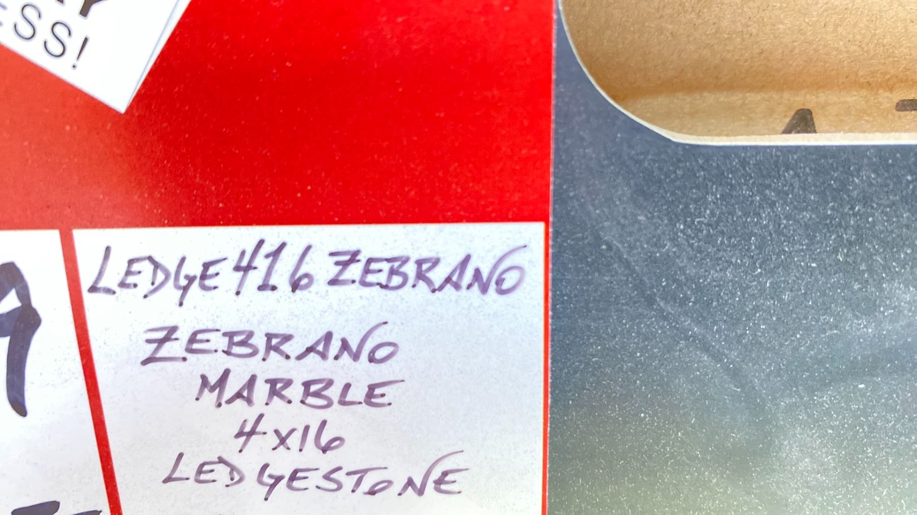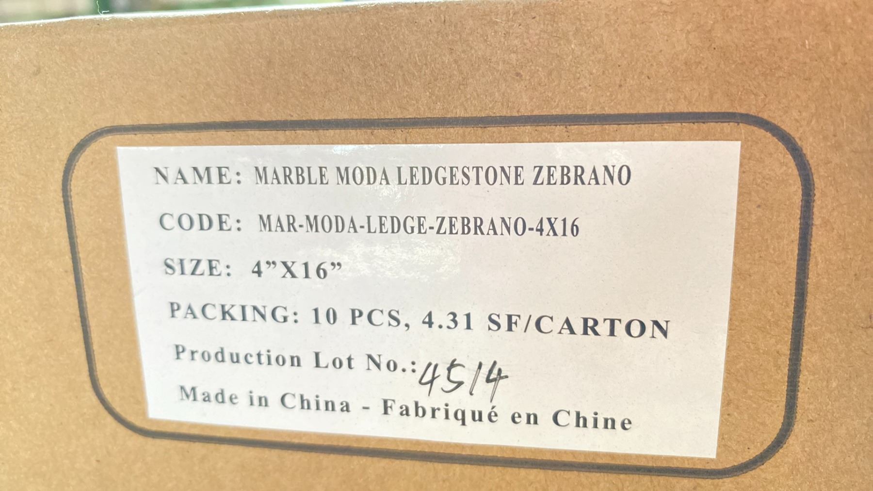 PALLET OF ZEBRANO MARBLE LEDGESTONE 4 X 16" APPROX 4.44SQ.FT. PER BOX, APPROX 64 BOXES, APPROX 284.16SQ.FT. TOTAL