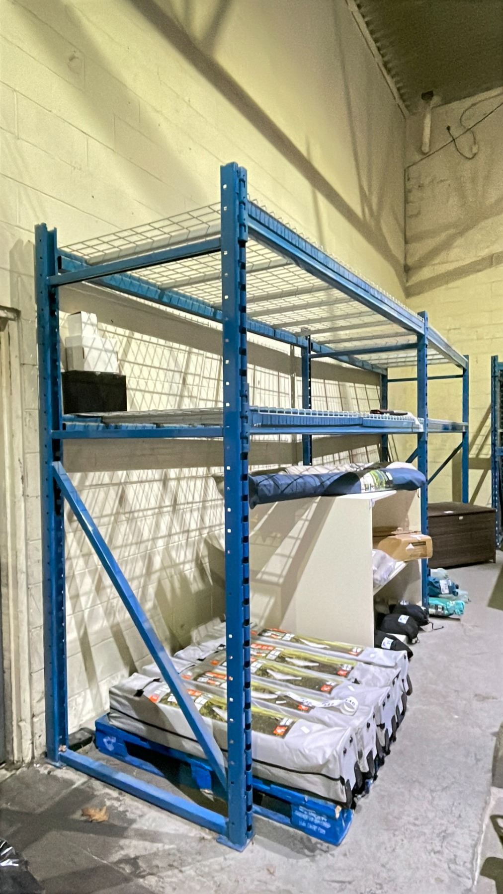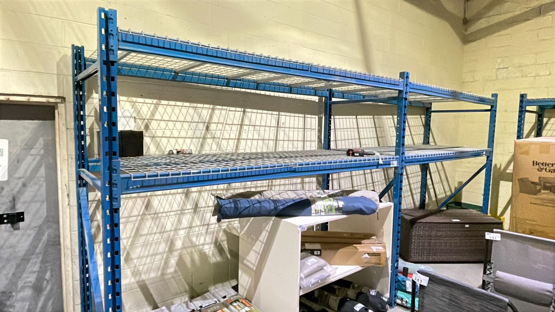PALLET RACKING SECTION INCLUDING; 3 8' UPRIGHTS, 8 9' CROSS BEAMS & 8 WIRE DECKS (CONTENTS NOT INCLUDED)