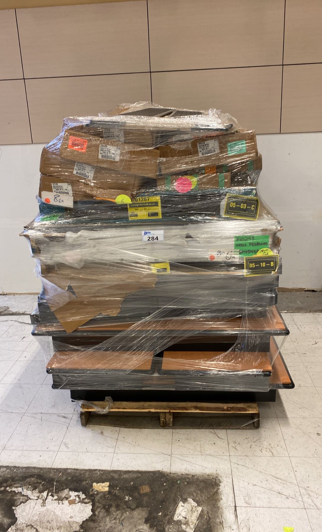 PALLET STACK OF BEACH COLOR DISPLAY SHELVING