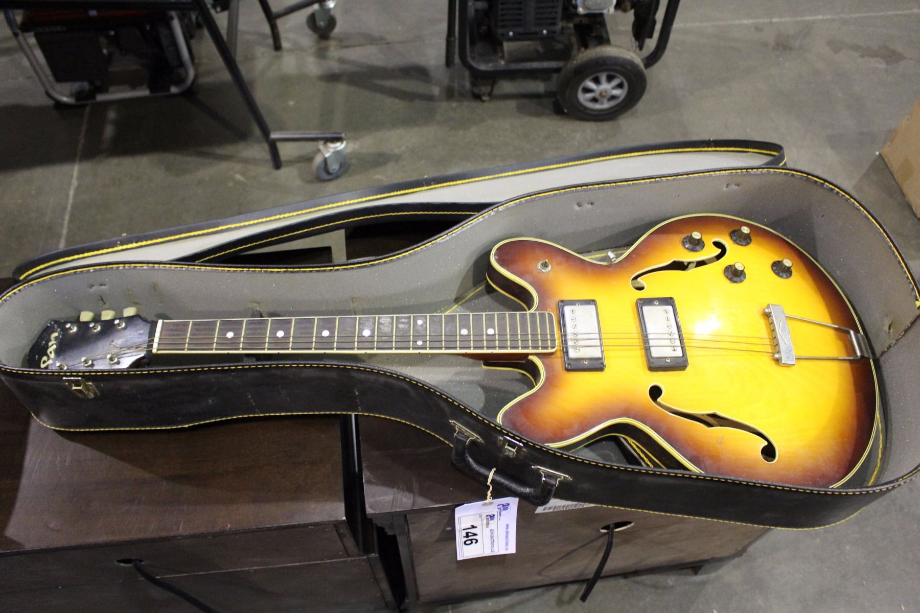 PAN ELECTRIC HOLLOW BODIED GUITAR IN CASE