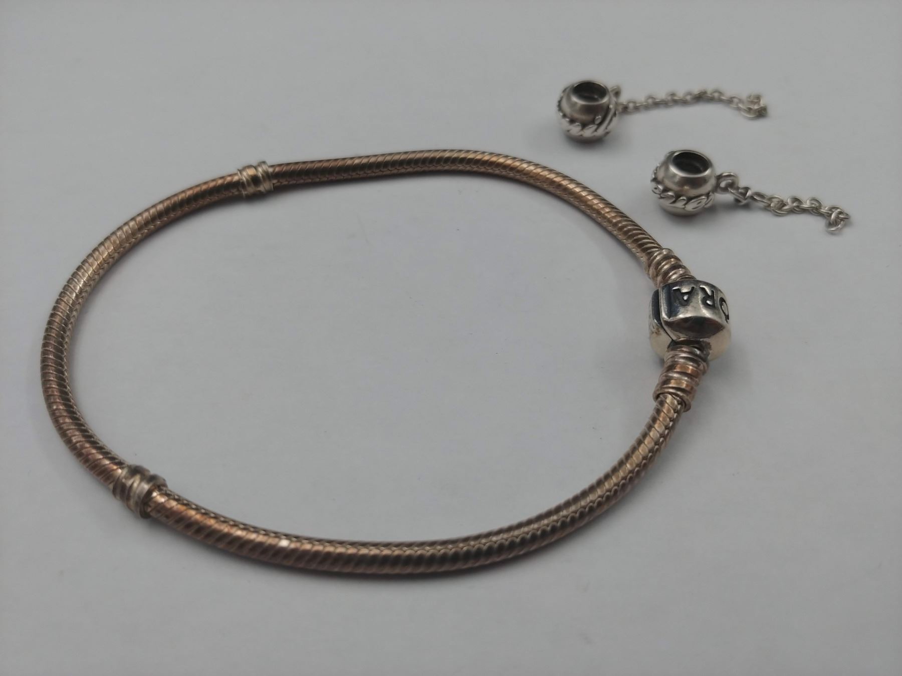 PANDORA .925 STERLING SILVER CHARM BRACELET WITH PAIR OF CHARMS