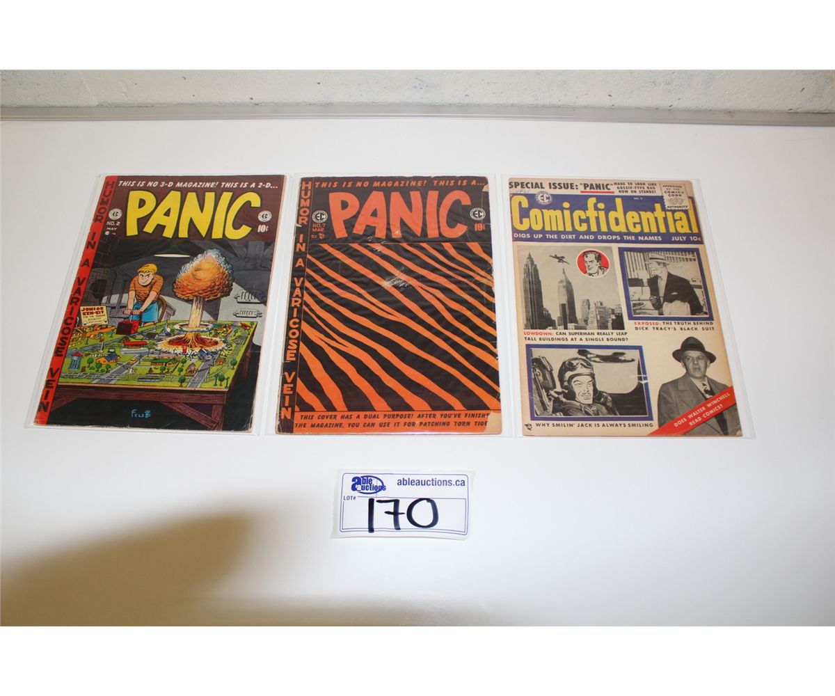 PANIC #2, 7 & 9 (1954-55) NICE EC COMICS RUN OF THE SATIRICAL COMPANION TO MAD SERIES. MIXED GRADES, SOLID BOOKS.