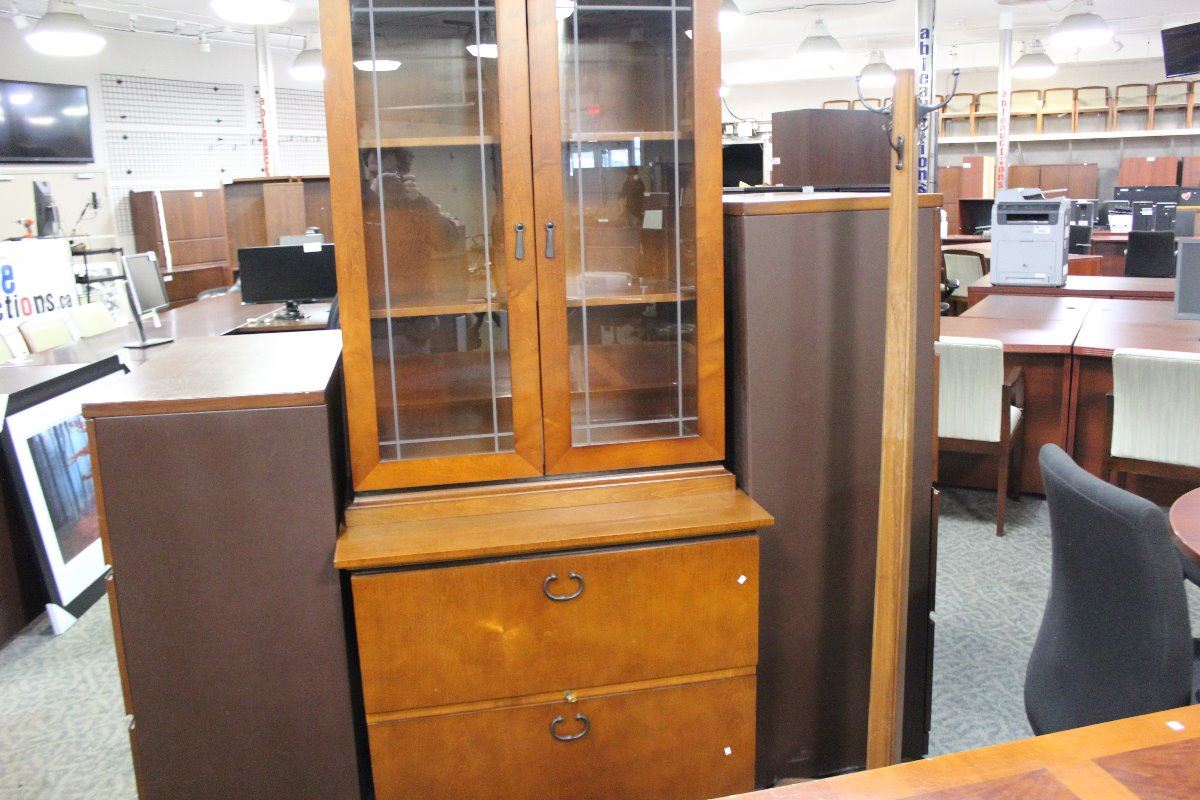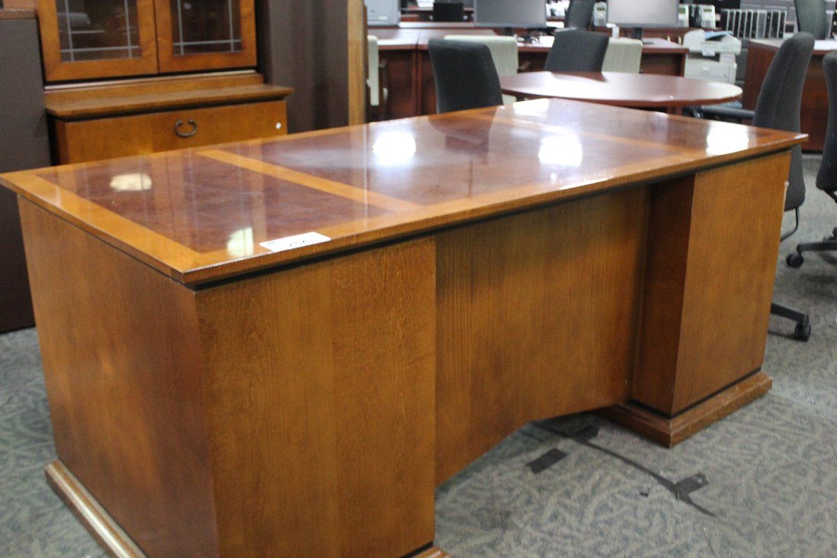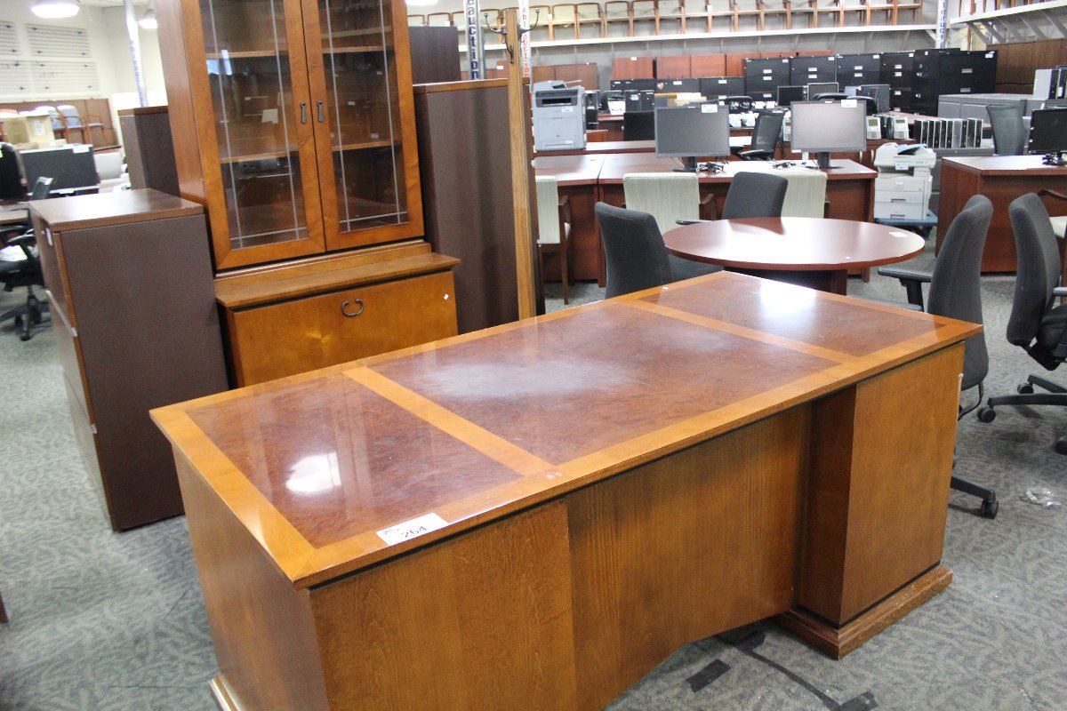 PAOLI TRADITIONAL BURLE INLAID 6' EXECUTIVE DESK W/ MATCHING GLASS DOOR STORAGE CABINET