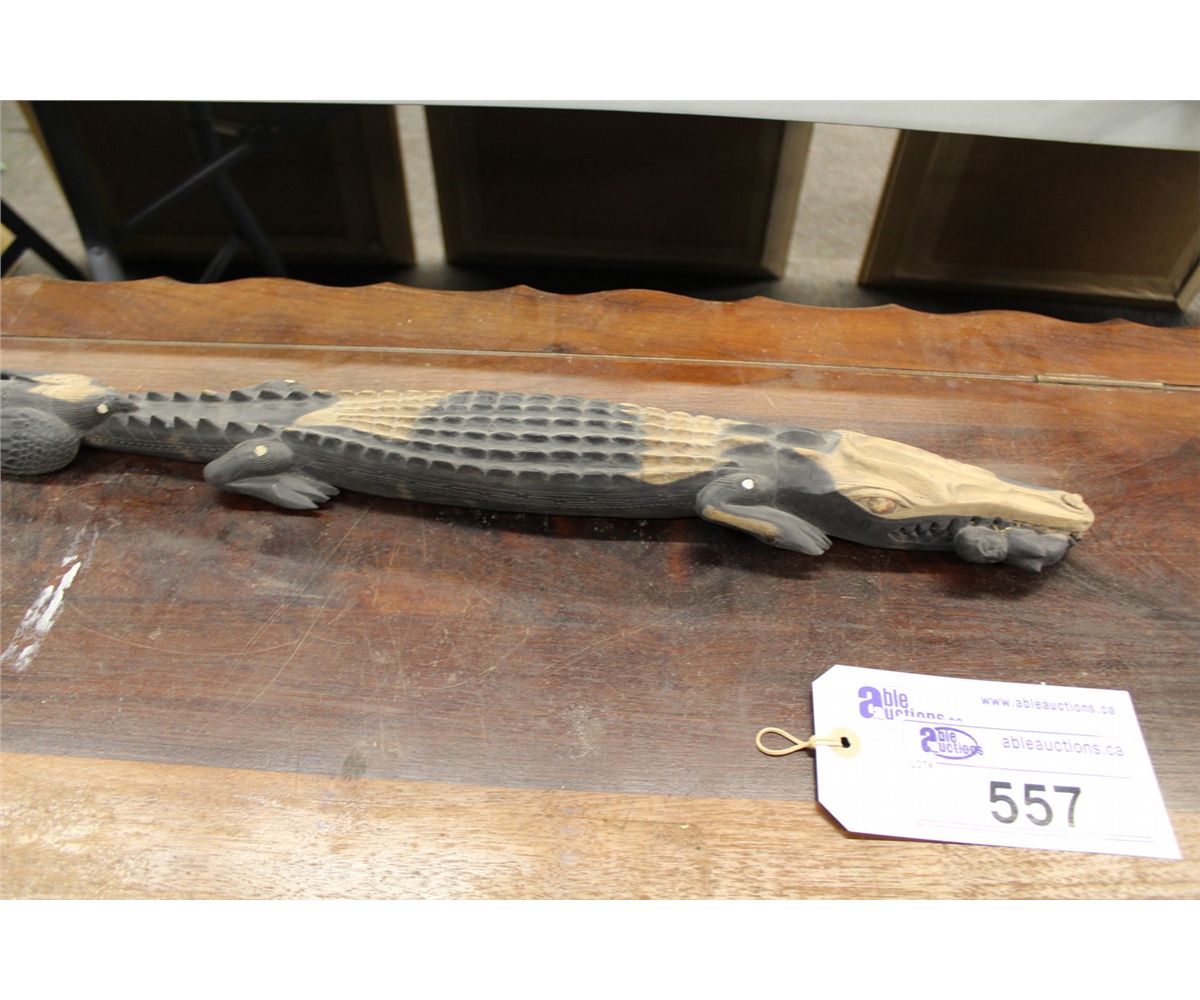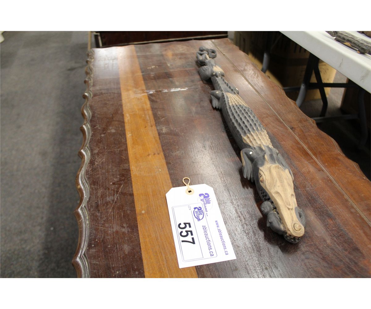PAPAU NEW GUINEA CROCODILE EBONY CARVING WITH MOTHER OF PEARL ACCENTS 27" LONG