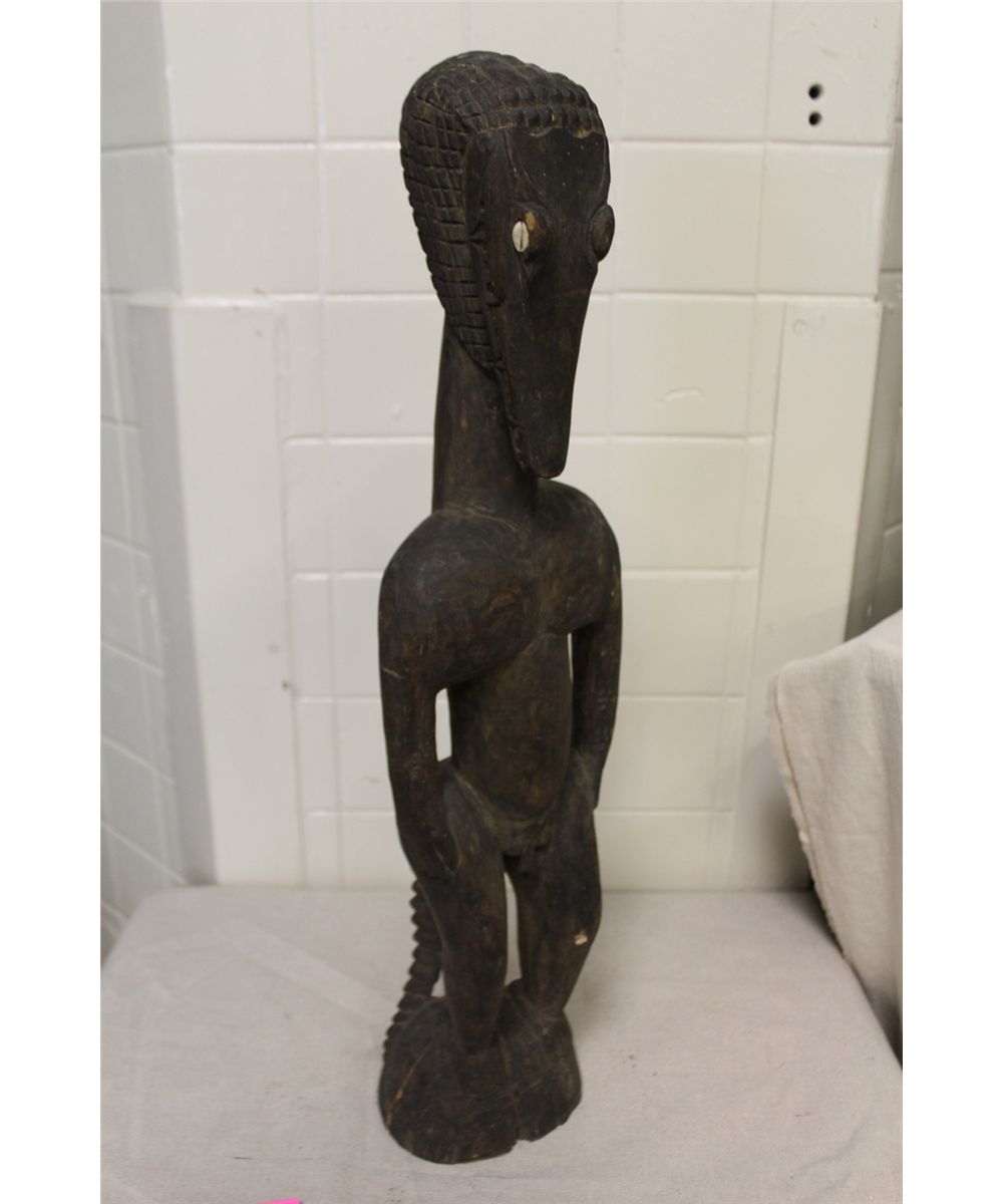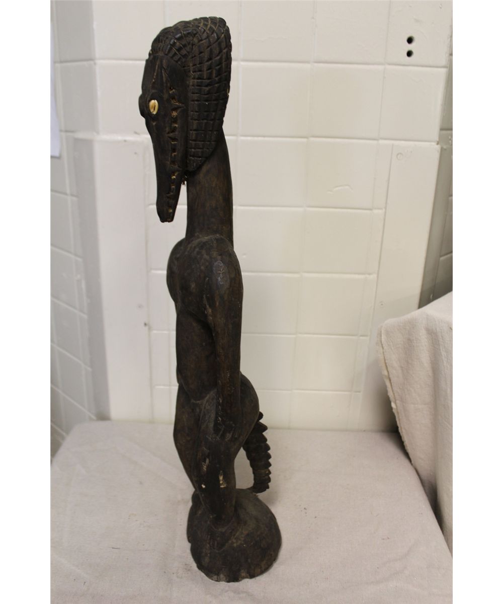 PAPAU NEW GUINEA CROCODILE MAN CARVING 25" HIGH FEATURING SHELL EYES- SEPTIK RIVER ANCESTOR FIGURE CROCODILE. ASSOCIATED WITH WARFARE- MUST BE TREATED WELL!