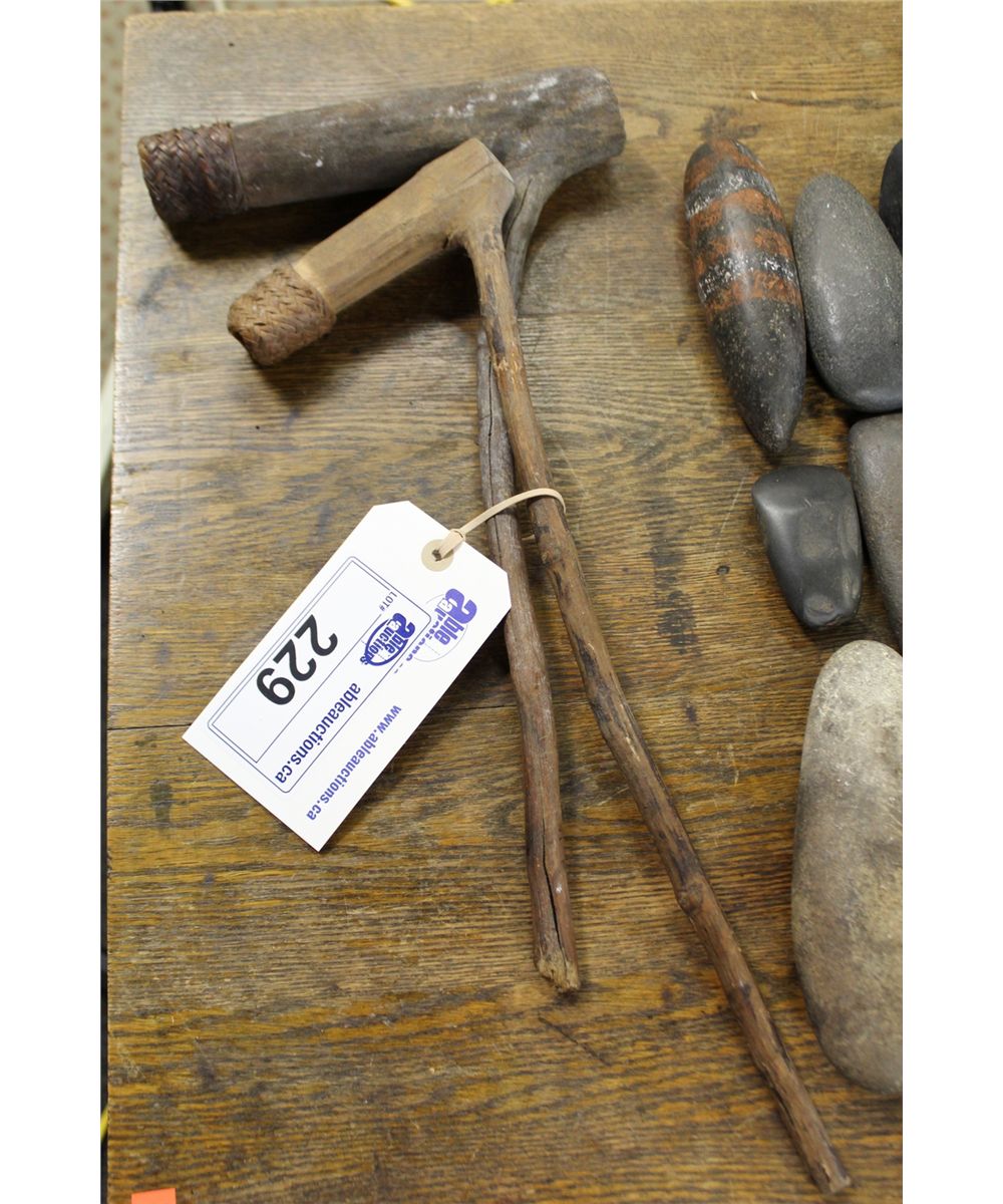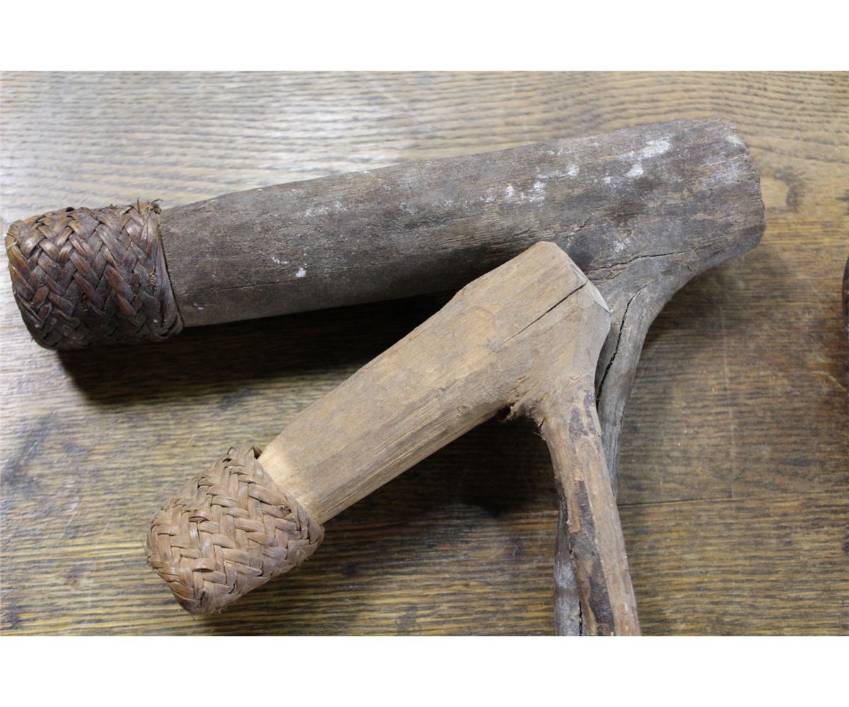 PAPAU NEW GUINEA STONES AND 2 STONE TOOL HOLDERS