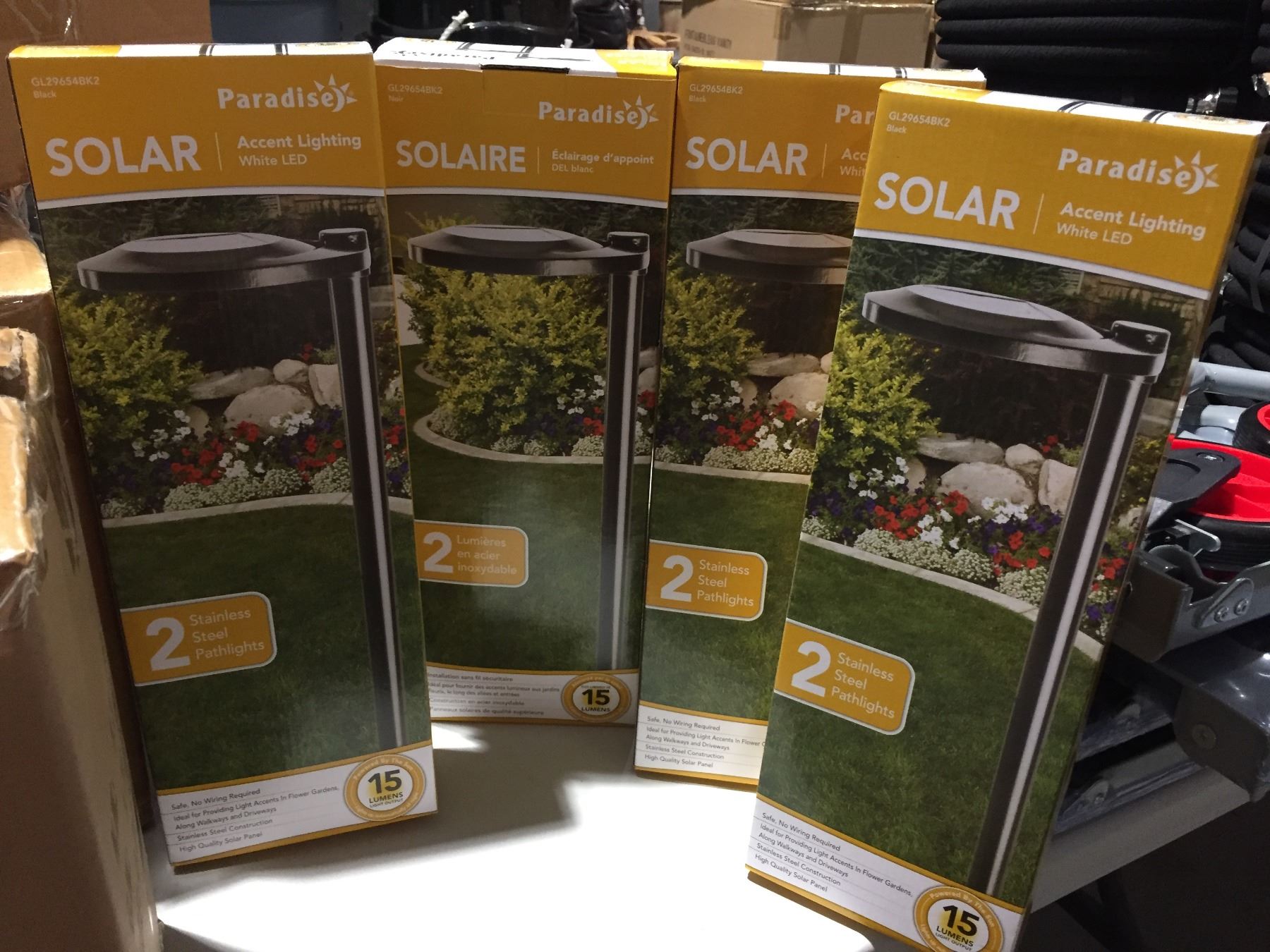 PARADISE SOLAR ACCENT LIGHTING WHITE LED STAINLESS STEEL PATH LIGHTS - NO WIRING REQUIRED, 15 LUMENS LIGHT OUTPUT - X 4 PCKS