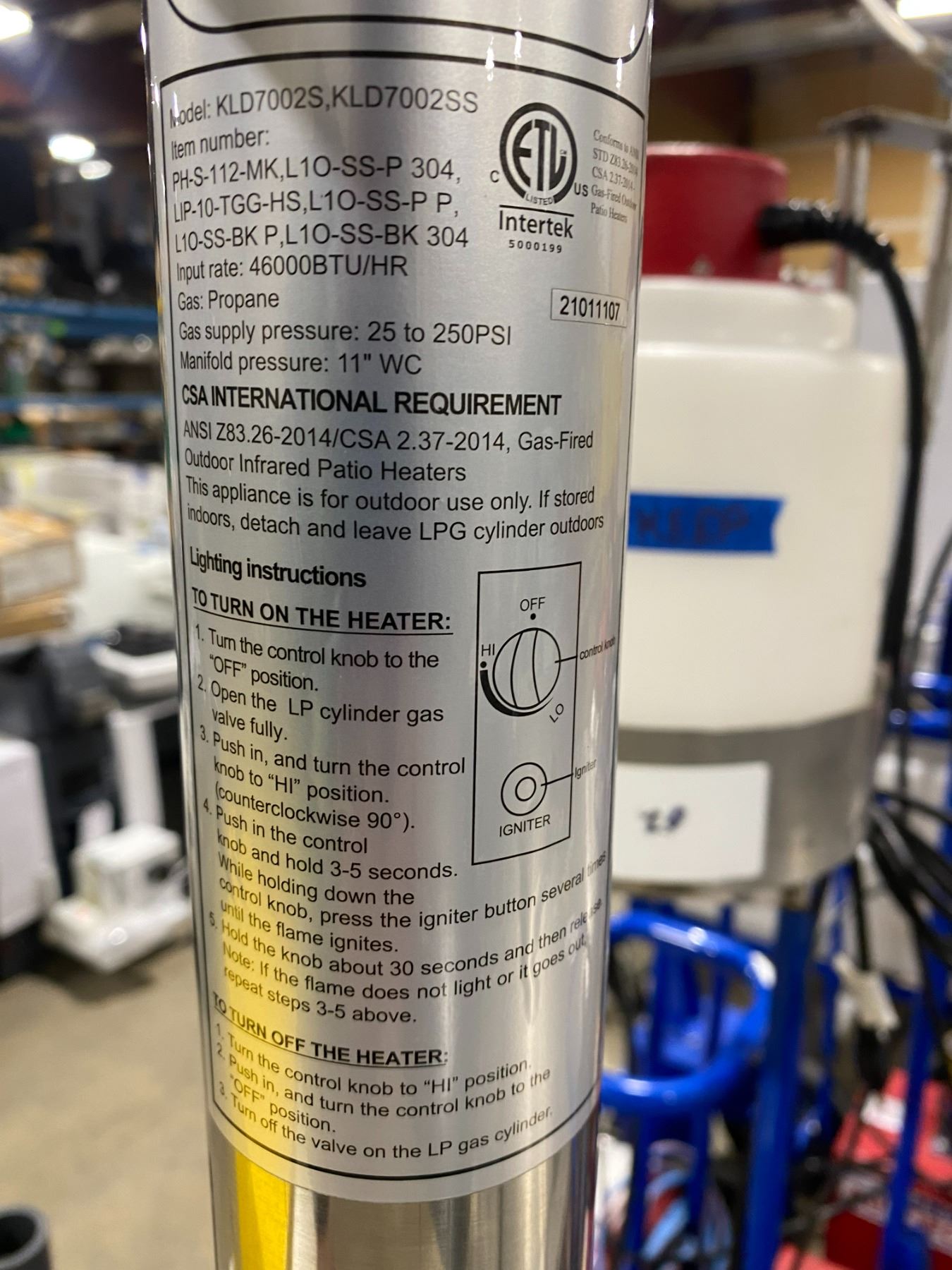 PARAMOUNT L10-SS-P P STAINLESS STEEL OUTDOOR PROPANE PATIO HEATER ( IN BOX )