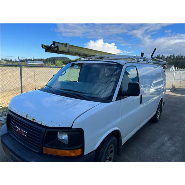 2011 GMC SAVANA, 4DR CARGO VAN, WHITE, VIN 1GTS8AF41B1132635, 308,209KMS, GAS, AUTO, RD/CC/AC/RI/AWD, ROOF RACK (LADDER INCLUDED), CARGO BULKHEAD, CRA
