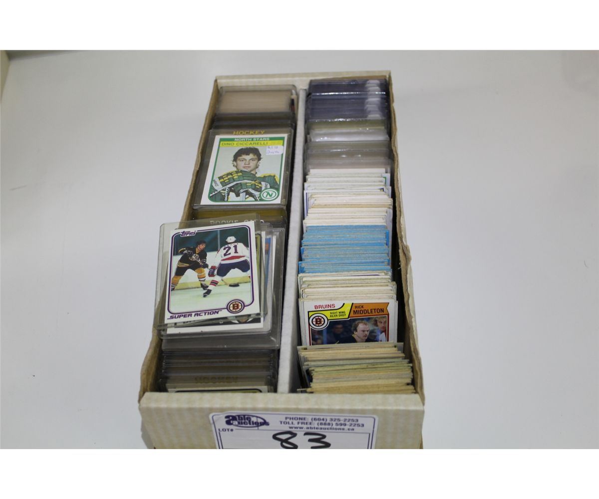 PARTIAL 1600 COUNT BOX OF ASSORTED 1970'S - 2000'S HOCKEY CARDS