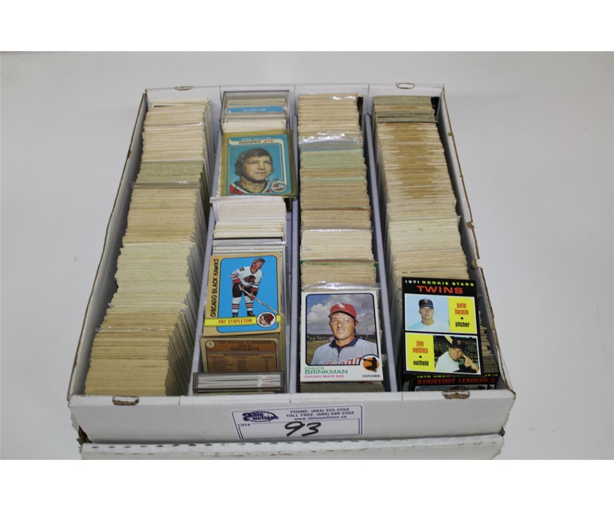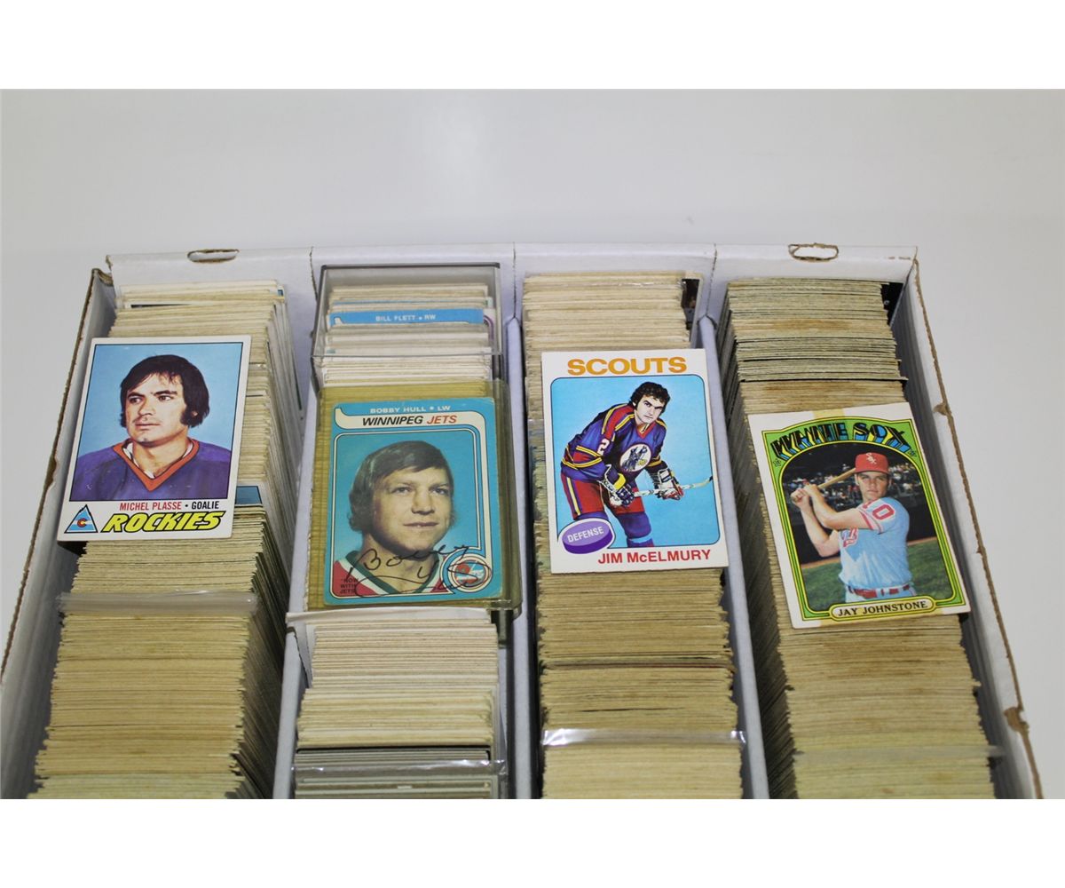PARTIAL 3200 COUNT BOX OF ASSORTED 1970'S-80'S HOCKEY AND BASEBALL CARDS INCLUDING MANY STARS