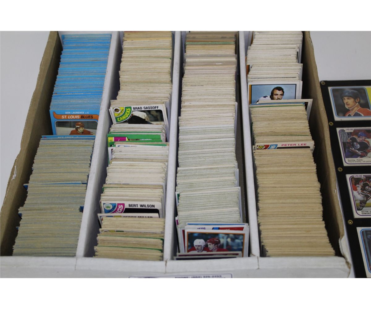 PARTIAL 3200 COUNT BOX OF ASSORTED 1970'S-80'S HOCKEY CARDS INCLUDING MANY STARS