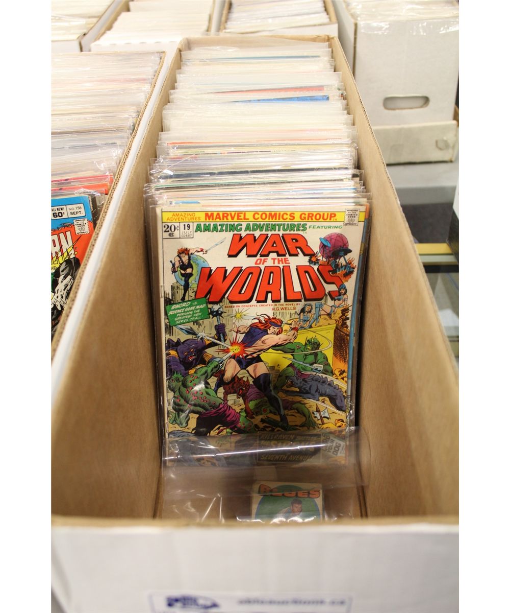 PARTIAL LONG BOX OF SILVER AGE TO NEWER COMICS INCLUDING CAPTAIN AMERICA, THOR PLUS ASSORTED VINTAGE HOCKEY CARDS