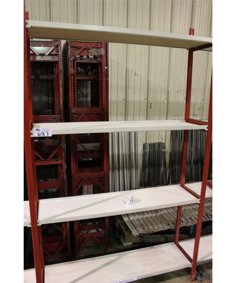 PARTS RACK SECTION INC. 1 RED UPRIGHT & 8 LONG WHITE SHELF CROSSBARS
