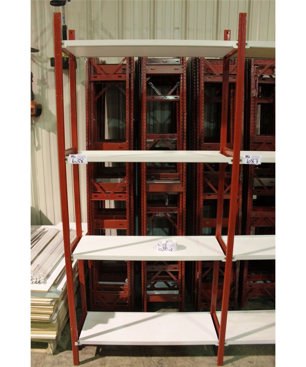 PARTS RACK SECTION INC. 1 RED UPRIGHT & 8 SMALL WHITE SHELF CROSSBARS