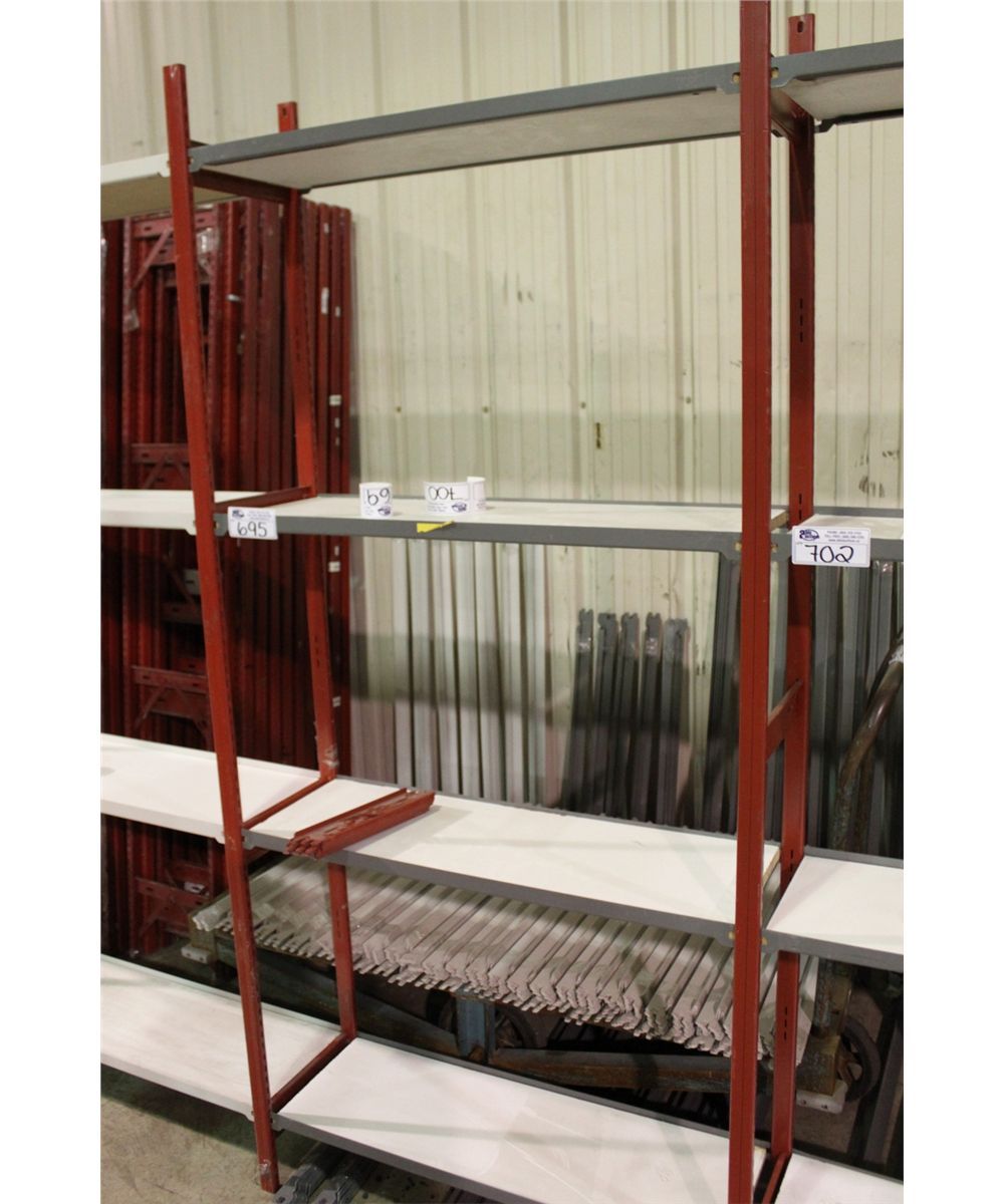 PARTS RACK SECTION INC. 1 RED UPRIGHT & 8 SMALL GREY SHELF CROSSBARS