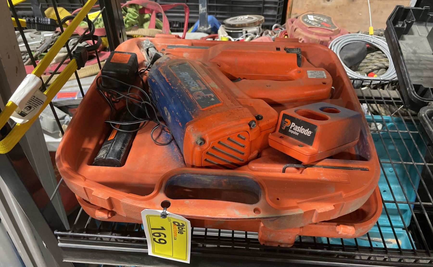 PASLODE IMPULSE CORDLESS NAIL GUN WITH 2 BATTERIES, CHARGER & POWER ADAPTER IN HARD TRANSPORT CASE