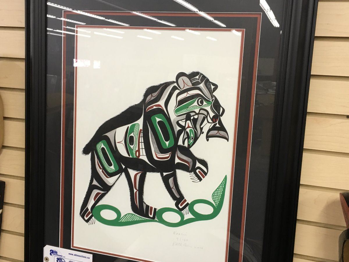 PAT AMOS "NAANII" 'GRIZZLY BEAR & SALMON' LIMITED EDITION PRINT 9/150 SIGNED BY ARTIST 15" X 21"