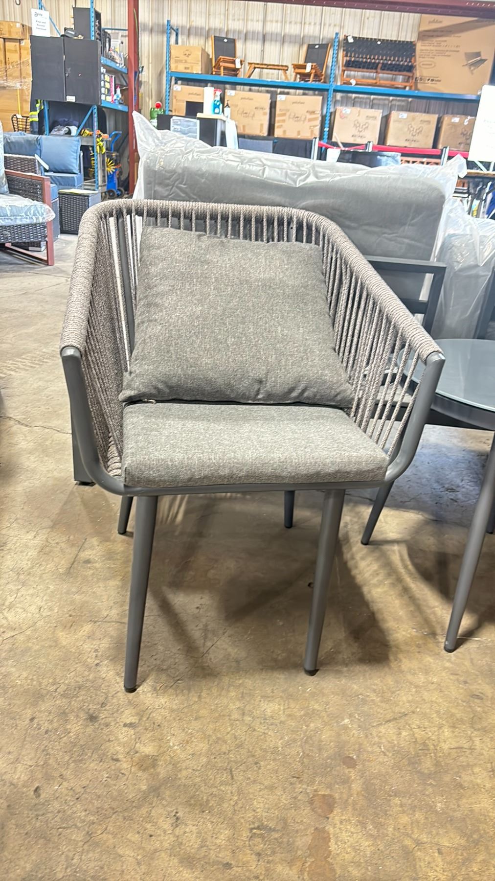 PATIO BLISS DARK GREY 3 PCS CORD WRAPPED GLASS TOP TABLE OUTDOOR PATIO CHAT SET WITH GREY CUSHIONS *IN BOX*
