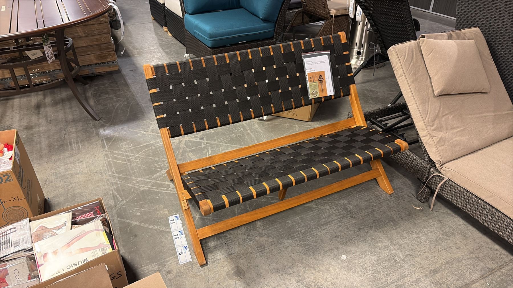 PATIO FLARE BLACK WOVEN FOLDING WOODEN BENCH