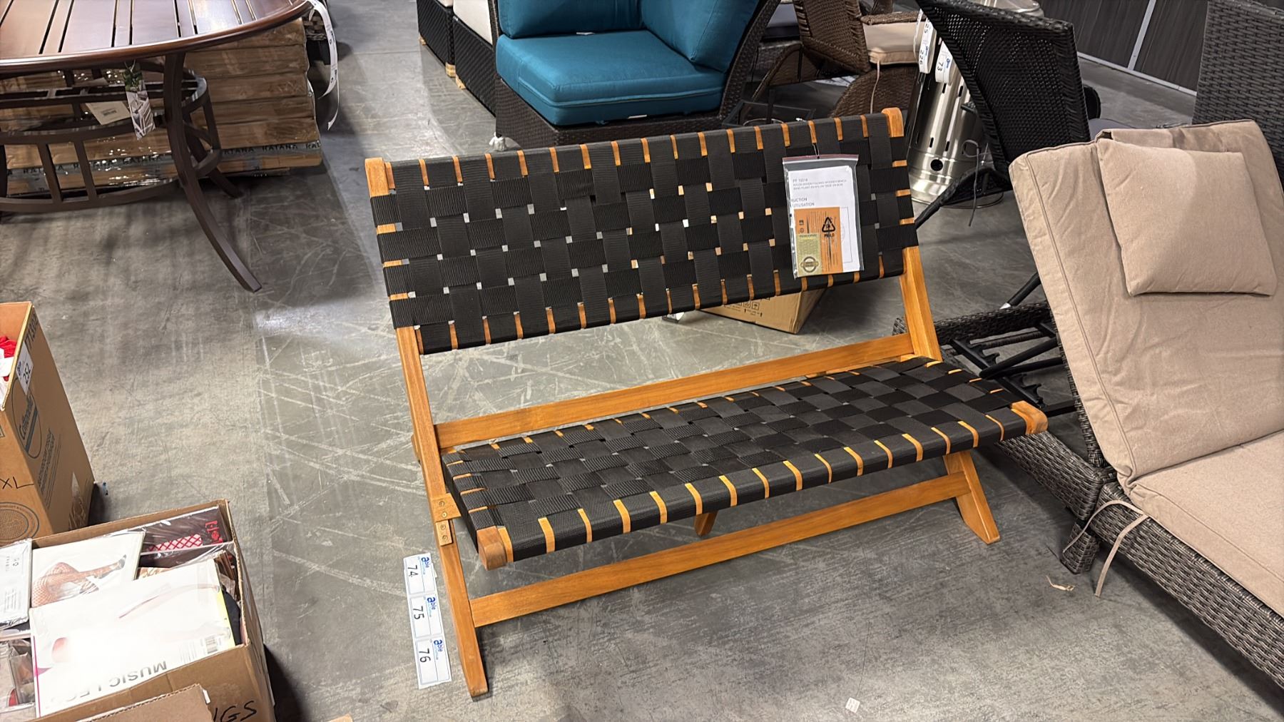 PATIO FLARE BLACK WOVEN FOLDING WOODEN BENCH