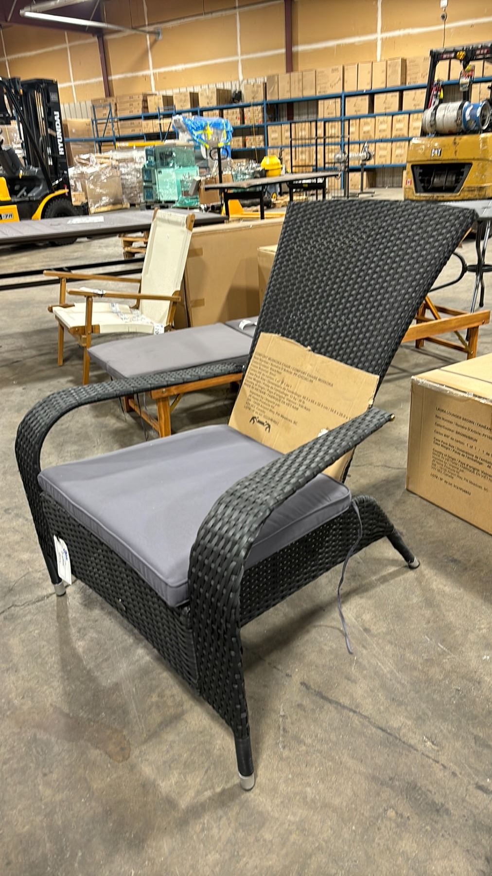 PATIOFLARE BLACK COMFORT MUSKOKA OUTDOOR PATIO CHAIR WITH GREY CUSHION ( PF-CH338C-BK ) *IN BOX*